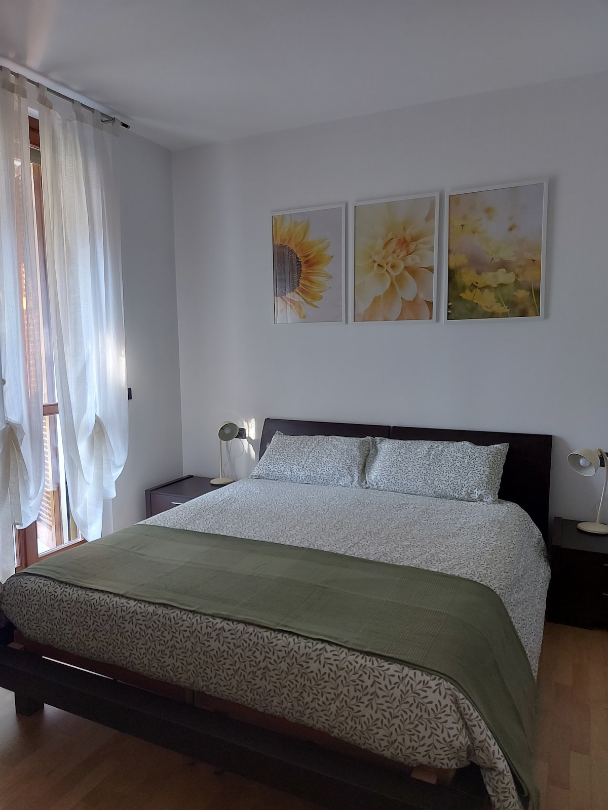 Lumineux appartement de deux pièces situé au 3ème étage avec petit ascenseur avec vue sur le lac et la montagne à quelques pas du centre du village composé de : grande salle (canapé [pas de lit], tv, wii-fii), cuisine équipée (machine à café italienne, bouilloire, grille-pain, plaque de cuisson, micro-ondes, réfrigérateur), chambre double avec accès au balcon. Salle de bain avec fenêtre, lavabo, wc, bidet, douche et machine à laver. Vous disposez d’une place de parking réservée, sur demande il y a la possibilité d’avoir un espace fermé et couvert pour les vélos.