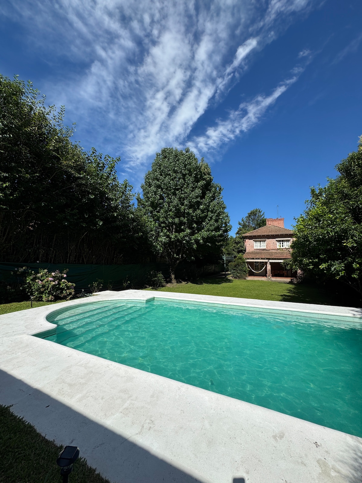 Maison 2 chambres, salle de bains, cuisine équipée avec 2 téléviseurs par câble et WiFi Première chambre lit double, la seconde avec 3 lits simples. Dans la cuisine-salle à manger, le cinquième lit, en dessous un sixième lit pour les enfants. Une galerie, un quincho avec barbecue et buanderie. Un terrain de 1 000 m2, cette maison dispose d'une piscine partagée avec les propriétaires de l'autre côté de la clôture vivante qui sépare les deux propriétés. Parking et accès découvert, partagé avec les propriétaires