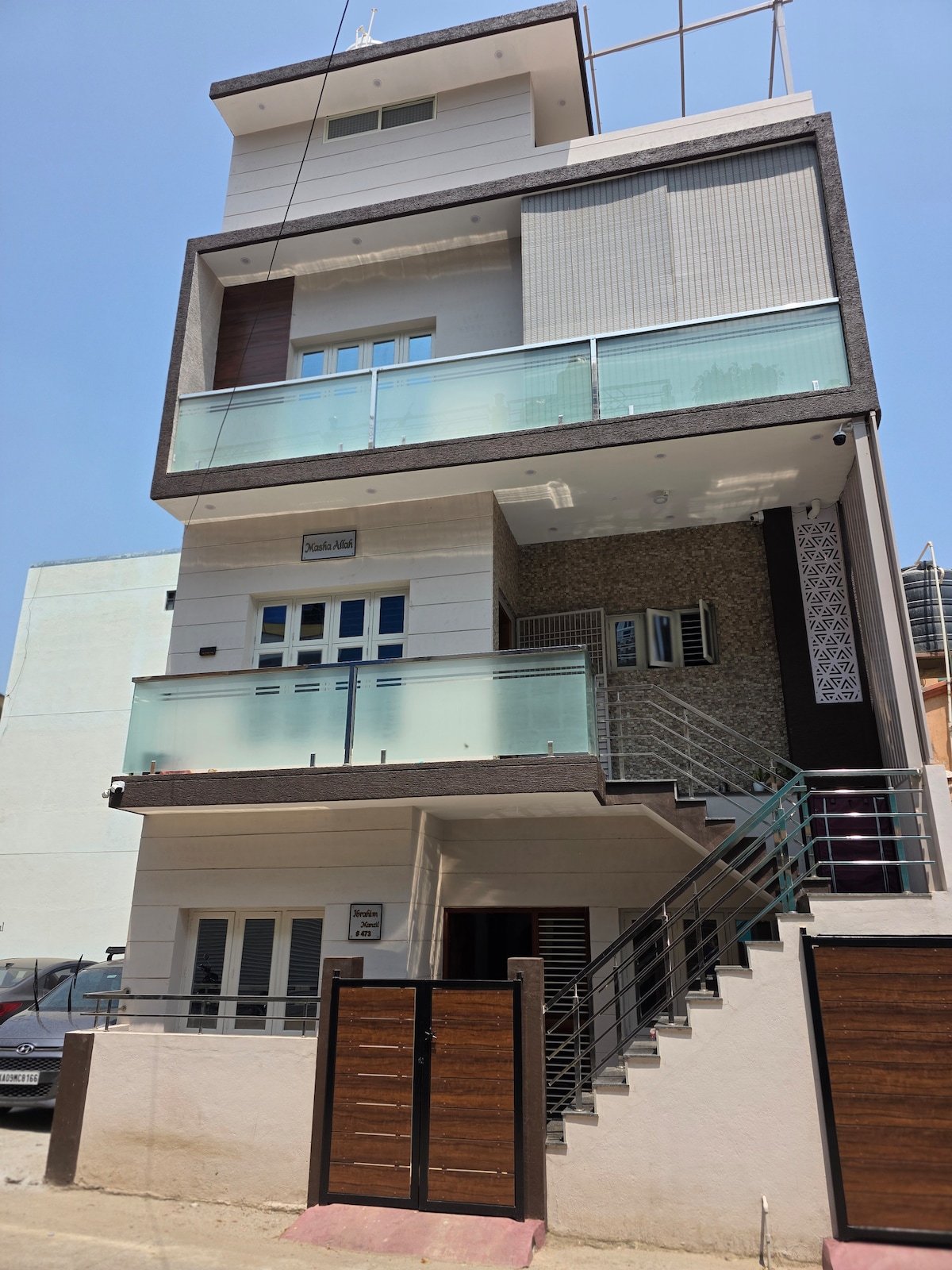 Premier étage, une chambre climatisée (frais supplémentaires basés sur l'utilisation réelle de la climatisation) avec 2 lits et matelas Sleepwell, avec salle de bain privée, eau chaude 24 heures sur 24, batterie de secours UPS pour les lumières et les ventilateurs uniquement (pendant environ 4 heures), WiFi fibre, réfrigérateur, petite kitchenette avec cuisinière à gaz à un brûleur, quelques ustensiles, bouilloire électrique, lave-linge, point de charge pour véhicule électrique.