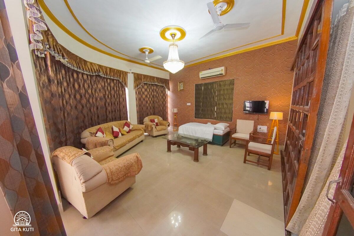 Grace Stay est un appartement propre et familial de 3 chambres et 2 salles de bain dans le centre de Varanasi, à seulement 1,5-2 km de Kashi Vishwanath Dham et Dashashwamedh Ghat. Idéal pour les voyageurs spirituels, les familles et les groupes. Profitez de chambres climatisées, du wifi, d'une cuisine et de l'aide d'un gardien. Un séjour paisible et accueillant à proximité des principales attractions. Nous voulons vous prévenir : comme la propriété est à environ 50 mètres de la route principale, vous pourriez entendre du bruit extérieur pendant votre séjour.