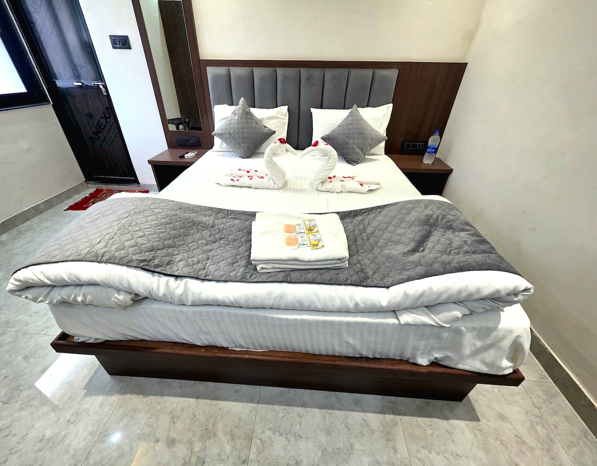 Hey , if you are looking for Luxury Hotel with Good vibes yet at the heart of heart of city then you are very close to perfect place for you and your family Get a chance to enjoy EgardenStay seamless online guest support for smooth and hassle-free stay Double Room near Godoliya with Wi-Fi & AC. Only for families and married couples. Located near Godoliya, in the heart of Varanasi, city’s most iconic destinations. Guests can easily reach Kashi Vishwanath Temple, Dashashwamedh Ghat, Shops.