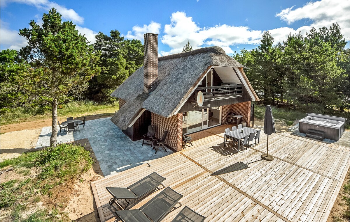 Maison d'été avec piscine et 2 terrasses dans le charmant Jegum Ferieland où vous pourrez profiter des vacances dans la maison de 148 m2. Entièrement équipé avec des meubles de jardin, un barbecue, etc. Proche du centre avec un grand terrain de jeux, un restaurant, une salle de billard et une petite boutique. La maison et la région sont particulièrement adaptées aux personnes qui veulent du confort, de la tranquillité et des expériences dans la nature, ainsi qu'aux familles avec de jeunes enfants. Il y a quatre chambres et deux salles de bain + douche dans l'espace de la piscine. De plus, il y a un grand salon lumineux avec un coin cuisine intégré.