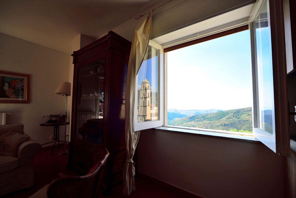Notre appartement est situé au premier étage, à l'intérieur de la cour du Palazzo del Baglivo, résidence historique entourée de verdure d'un village authentique et paisible. Idéal pour ceux qui recherchent la détente et l'intimité. À disposition des clients : ✅ 2 lits + 2 lits supplémentaires ✅ Piscine panoramique avec vue sur la vallée ✅ Wi-Fi gratuit ✅ Place de parking incluse ✅ Espace détente/travail dédié Un environnement intime et confortable pour un séjour paisible au cœur du Cilento.