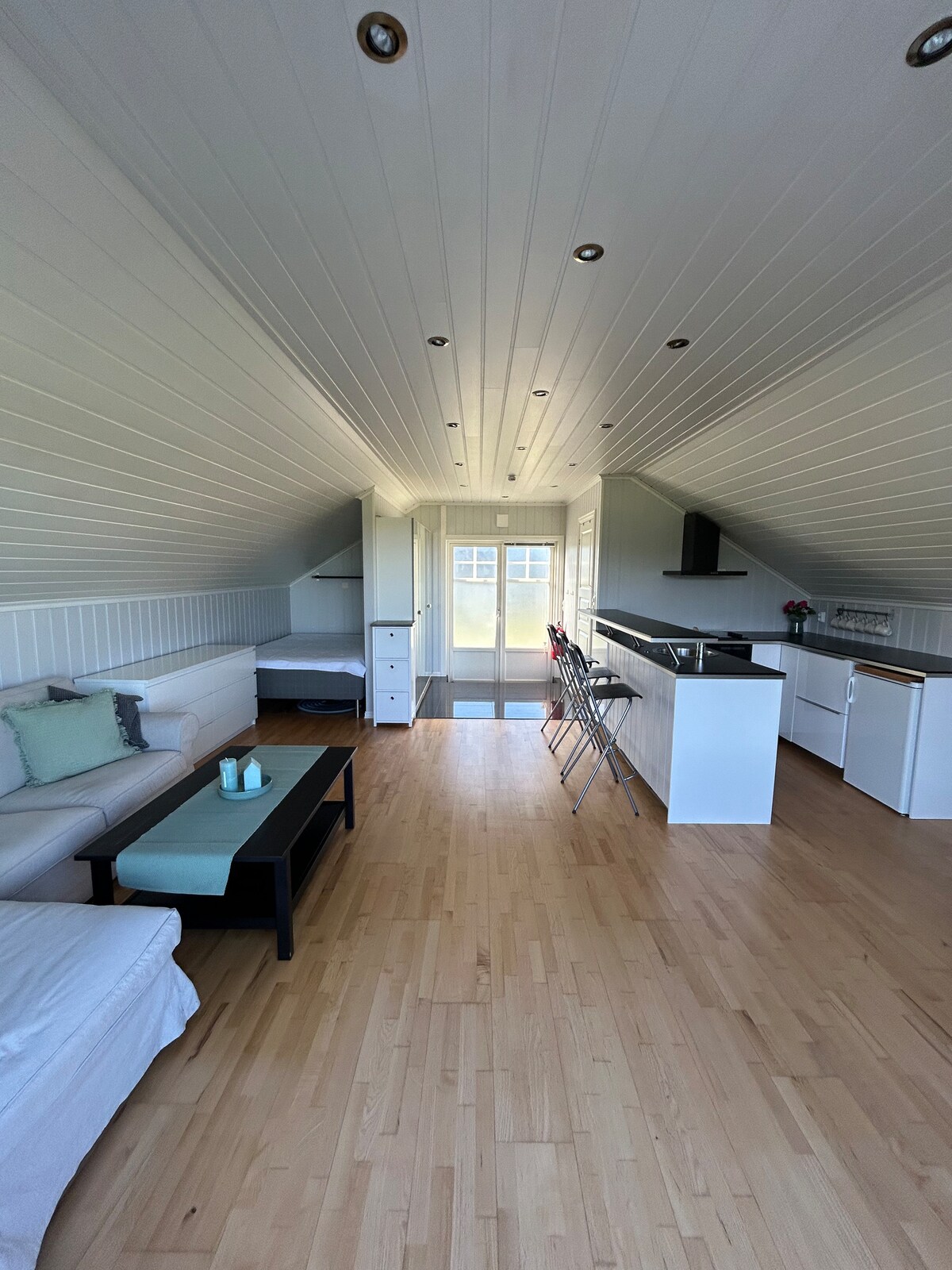 Annexe confortable avec soleil le soir. Proximité avec le magasin et la mer qui est à 2 km. Arrêt de bus à seulement 250 m. Un barbecue au charbon de bois (en été) est disponible et une petite terrasse avec table et 2 chaises. À l'intérieur, il y a un chambre avec un lit 120. Sur le loft il y a un matelas de 2 75 cm. Des couettes et des oreillers sont disponibles pour 3 personnes. Les draps et les serviettes de toilette sont apportés ou loués Tous les ustensiles de cuisine sont disponibles. Wi-Fi. Télévision avec chromecast. La ville de Tønsberg se trouve à 8 km. L'aéroport de Sandefjord Torp est à 30 km.