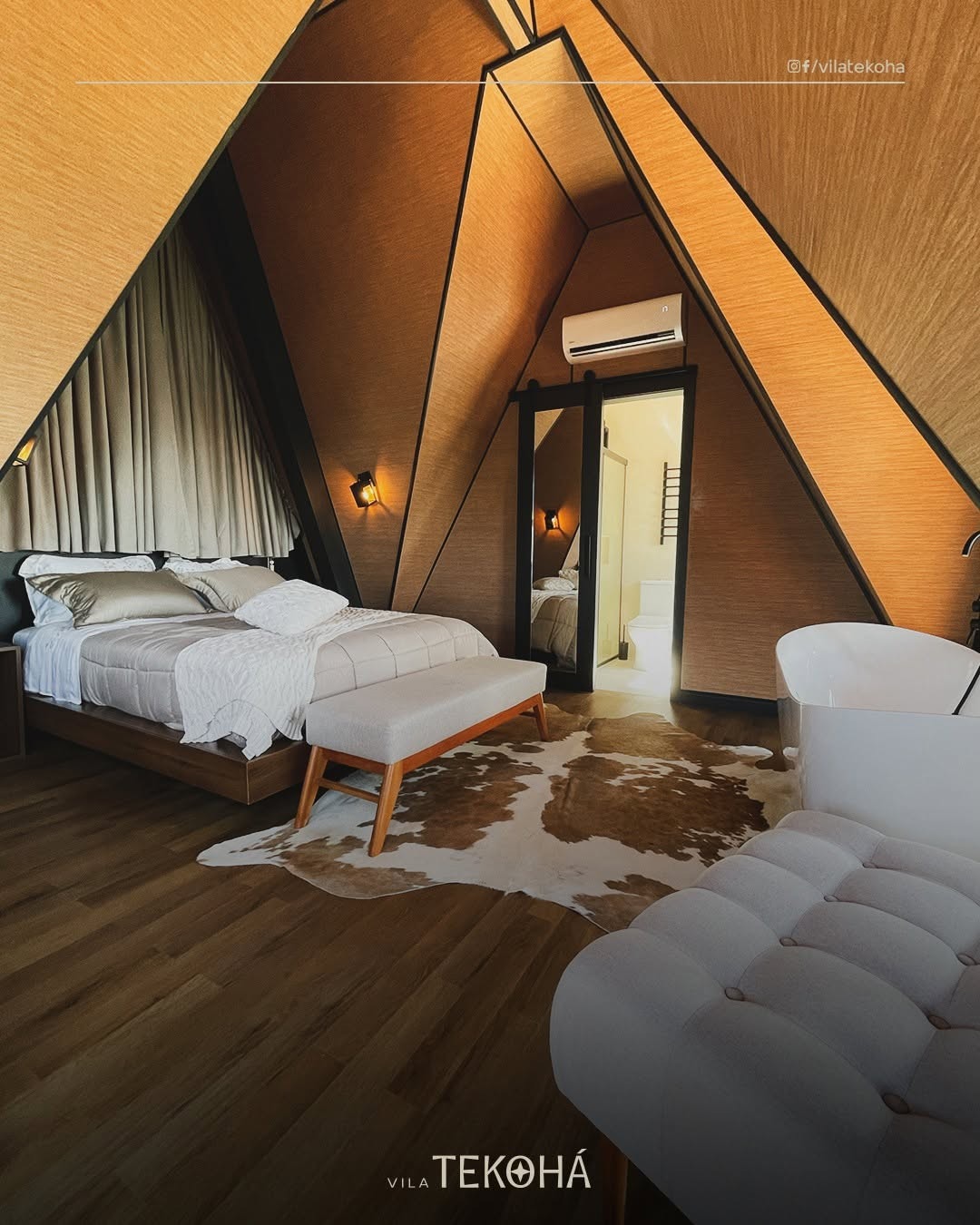 Le Refuge du Sítio est une maison modulaire, inspirée des maisons américaines et européennes ! Une merveilleuse rencontre de la nature avec l'architecture. La construction a des structures rustiques, décorées avec tout le luxe et le design pour que vous ayez une expérience inoubliable avec raffinement et confort. Une atmosphère unique qui vous procurera calme et une connexion indescriptible avec la nature. Profitez de la tranquillité de ce moment pour profiter de moments à deux ou vous amuser et vous reposer en famille.