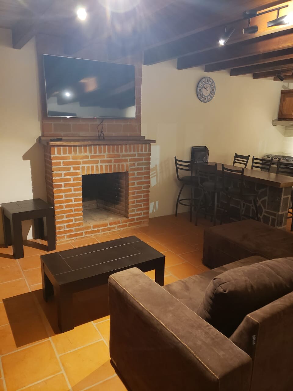 Chalet avec deux chambres, salle de bain et demie, télévision, WIFI, cuisine,terrain de basket et fronton ou volleyball, barbecue, vue panoramique sur le centre de huasca. Proche attractions touristiques. Le check in et check out est flexible en fonction de la disponibilité du logement.