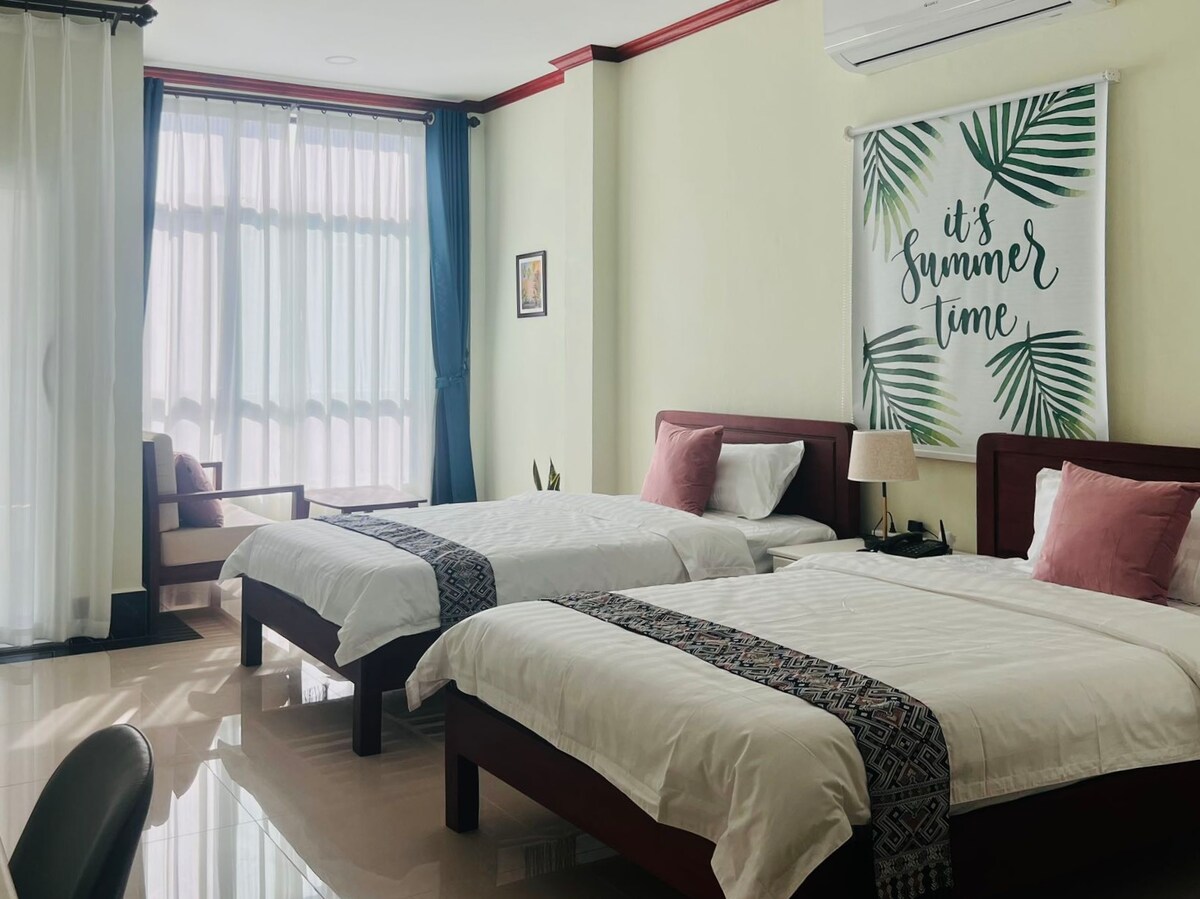 Près de Mekong Samsenthai/Wat Si Muang/Centre commercial Parkson/Chambre lumineuse avec 2 lits/Hôtel de style appartement