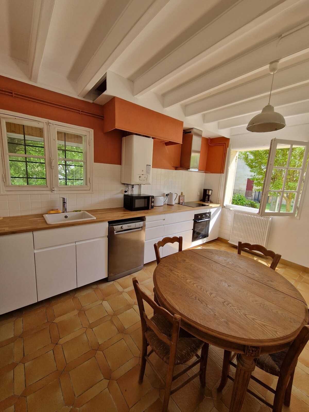 Maison au cœur des vignes , 2,5 km du village de Saint-Emilion. Environnement calme. Trois chambres dont deux modulables (2 x 90 ou 1 x 180). Un couple avec quatre enfants ou trois couples maximum peuvent être logés . draps Lits et serviettes bain fournis. Salle de bain et toilettes séparées. Cuisine indépendante et entièrement équipée. Aire de pétanque et molkki , table et chaises de jardin . bbq . Le gîte ( 110m2) est une ancienne maison de vigneron entièrement rénovée en 2018.