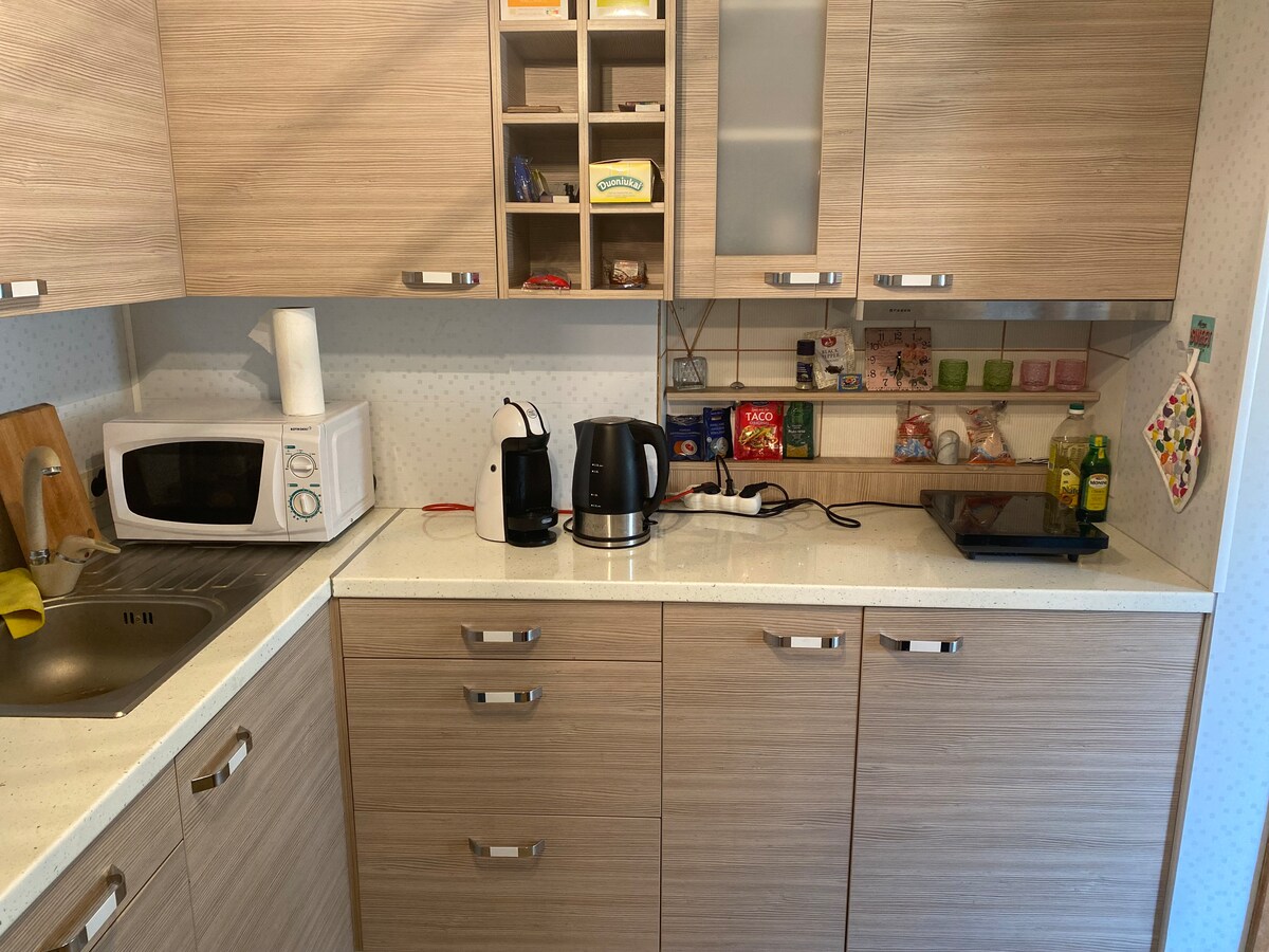 Un appartement chaleureux et coloré d'une chambre pouvant accueillir jusqu'à 4 personnes. • Linge de lit et serviettes propres fournis avant chaque séjour. • Nettoyage hebdomadaire et nouveau linge de lit, serviettes si vous séjournez plus d'une semaine. • Savon, shampoing, thé, café fournis. • Télévision connectée 4k 55 pouces • Wi-Fi haut débit ultra-rapide. • Cuisine équipée d'un micro-ondes de qualité, d'une bouilloire et d'autres appareils nécessaires, notamment un fer à repasser, une planche à repasser, un lave-linge, un réfrigérateur-congélateur. Casseroles, poêles et autres équipements nécessaires fournis pour les bases de la cuisine.