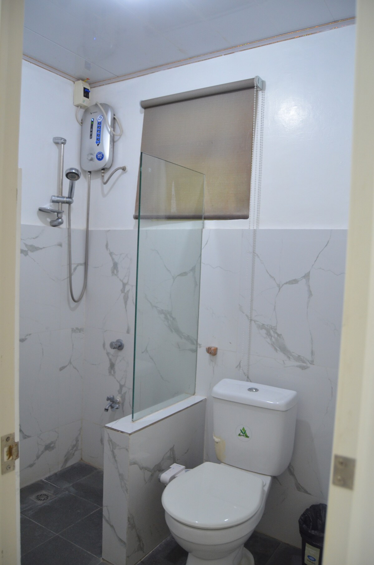 Toute la maison avec 2 chambres. Chambre principale avec balcon Climatisation Douche avec toilettes vue de la fenêtre sur la route principale commode de fenêtre placard 2 tables d'appoint. Confortable pour 6 personnes 2 lits 4 matelas au sol Chambre 2 Petit lit double chambre avec ventilateur confortable pour 4 personnes