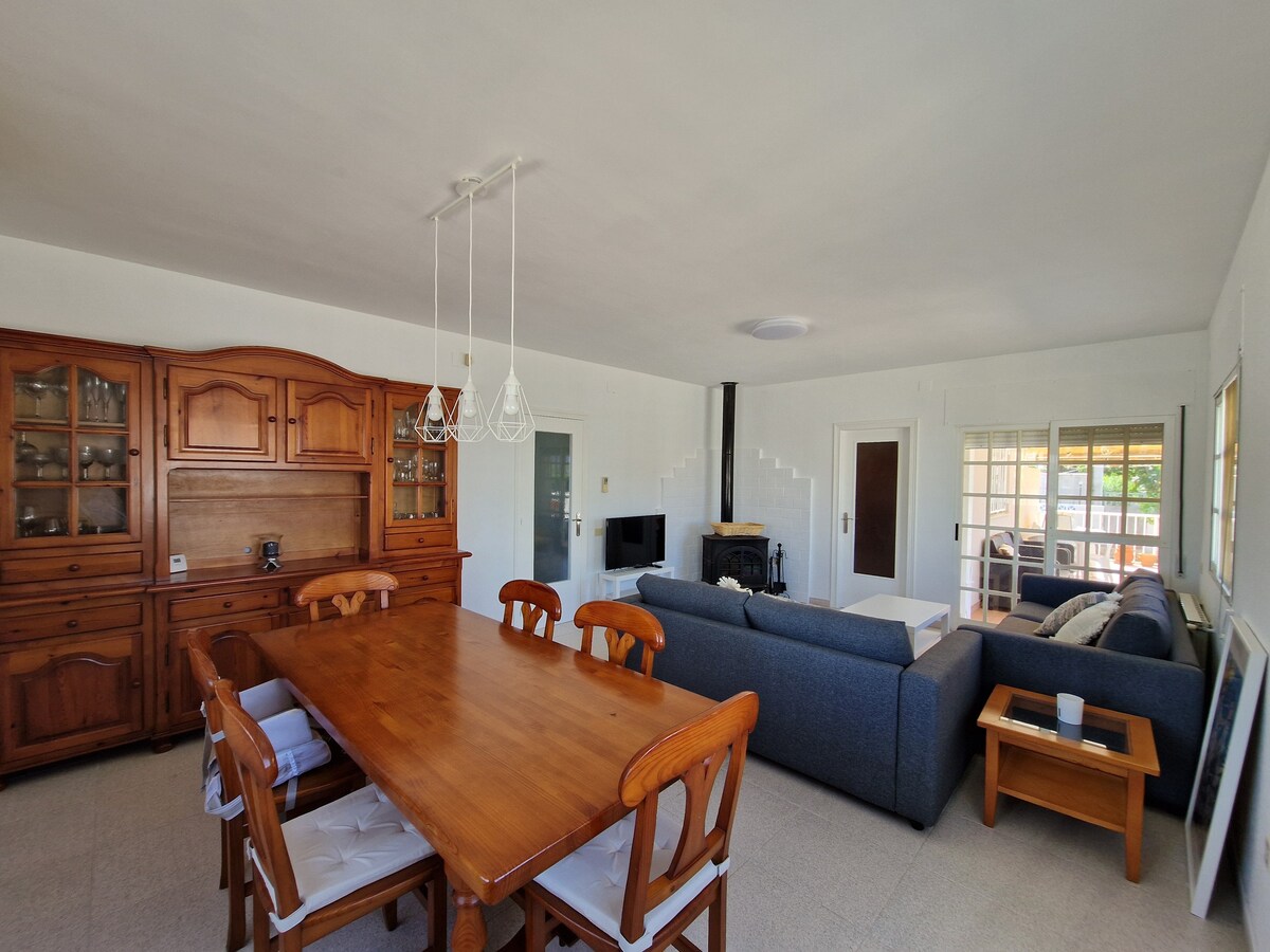Ce chalet espagnol Hacienda isolé offre une vue imprenable sur la montagne, une terrasse très privée et un espace barbecue. L'ENDROIT IDÉAL SI VOUS AIMEZ LE SILENCE ET LA NATURE. Nagez dans la piscine commune ou rendez-vous à la plage et aux bars à tapas. Allez faire de la plongée avec tuba dans la Méditerranée, trouvez les vignobles de Penedès avec des visites de dégustation, ou visitez le superbe château des Templiers au-dessus de l'Èbre (kayak et pêche incroyables). Les marchés fermiers, la gastronomie et le vin sont tous de classe mondiale. Venez profiter de LA VRAIE ESPAGNE !
