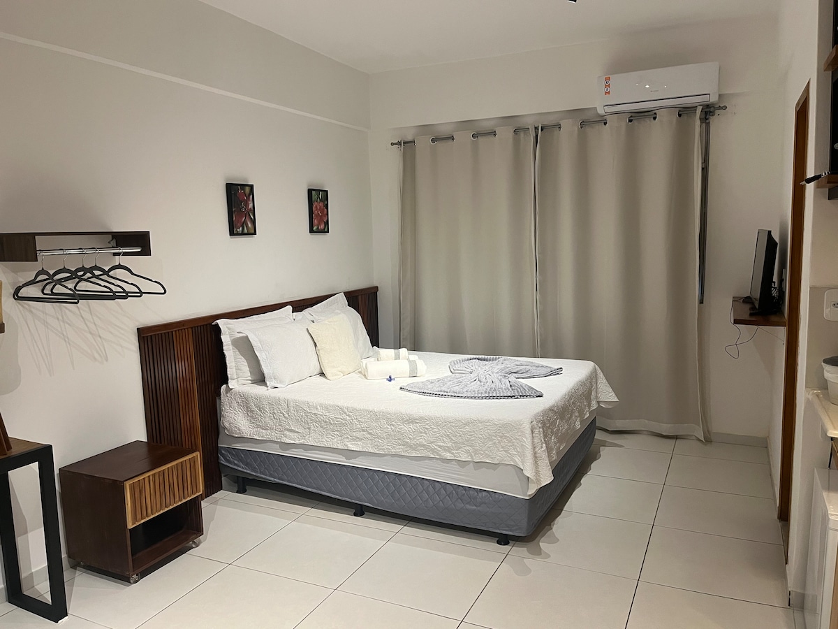 La grande suite neuve et moderne offre confort et sécurité. Équipé d'un lit queen, d'un canapé pouvant accueillir une autre personne, de la climatisation, d'une télévision, d'une connexion Wi-Fi, d'une cuisine équipée d'un minibar, d'un micro-ondes, d'une bouilloire, de plats et d'autres articles pour préparer des collations, de petits repas ou siroter un bon vin. Situé dans le centre de Vitória da Conquista, il dispose également d'un garage fermé, avec télécommande. Immeuble avec caméras et serrure numérique. Logement élégant et élégant.