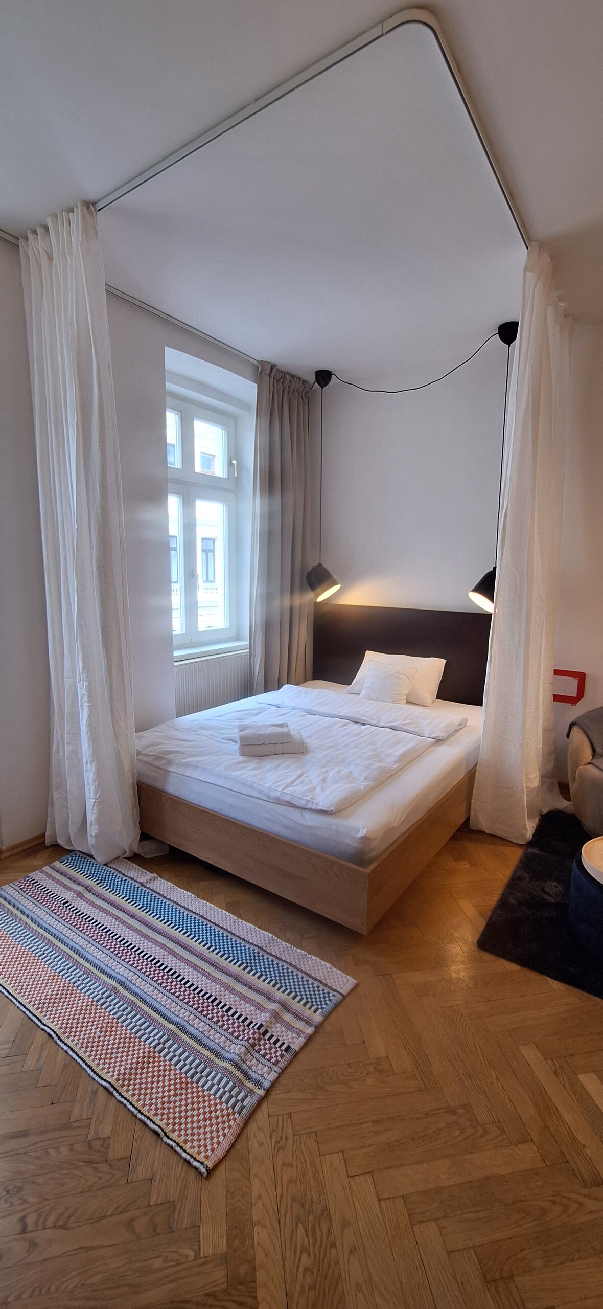 Die modernen Studioapartments sind 35 qm groß und verfügen über einen Schlaf-/Wohnraum, Küche, Badezimmer und Terrasse. Beide Apartments sind hofseitig gelgen und daher angenehm ruhig zu jeder Tageszeit. Sie befinden sich im 9. Bezirk, gegenüber der U-Bahn Station Nußdorferstraße und mit der U-Bahn oder der Straßenbahn ist die Innenstadt innerhalb von 15 Minuten zu erreichen. Es handelt sich um eine Apartment-Kategorie, die mehrere Apartments umfasst. Sie buchen 1 Apartment dieser Kategorie.