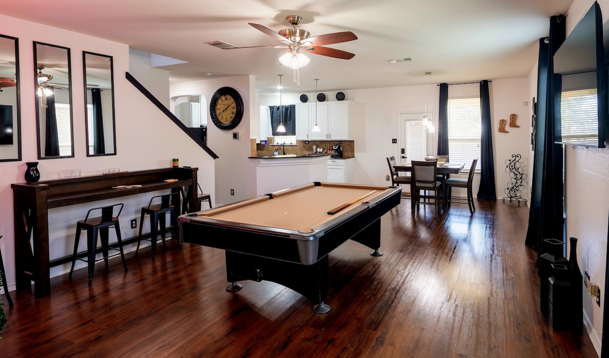★UNE OFFRE PASSIONNANTE et UN NOUVEAU LOGEMENT ★Il s'agit d'une belle maison toute neuve pour votre plaisir ! Nous disposons de 3 chambres et 2 salles de bain avec une immense cour arrière et une vue imprenable sur le coucher de soleil du Texas. La maison offre trois grandes chambres avec beaucoup d'espace, des lits confortables, une connexion Wi-Fi rapide, de grands placards, des chargeurs et toutes les commodités dont vous pourriez avoir besoin pour vos vacances. Vous trouverez la propriété exceptionnellement propre, bien équipée et surtout extrêmement confortable. Que vous souhaitiez vous rendre en ville pour une soirée ou séjourner à.