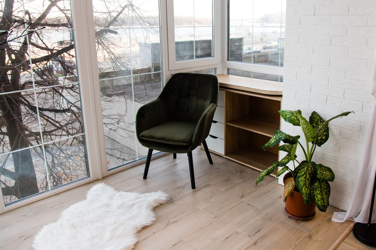 Bien situé : À distance de marche de la station de métro Kontraktova, variété de restaurants, descente Andriivsky, allée d'artistes, terrasses d'observation sur Dnipro et Kyiv Tout ce qui se trouve dans l'appartement est conçu pour offrir la meilleure expérience de repos et de travail : - Lit king size confortable king size - Quelques zones confortables pour se reposer, prendre des photos ou lire des livres - Espace de travail, connexion internet stable - Cuisine avec micro-ondes, cuisinière, bouilloire électrique, réfrigérateur - Douche à effet de pluie, ventilateur, lave-linge dans la salle de bain