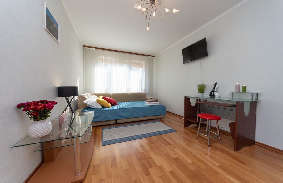 Un studio à seulement 1 minute du métro Minska. Minimaliste, propre, confortable et élégant, l'appartement dispose d'un espace de travail, d'un grand canapé-lit (2 m x 2 m lorsqu'il est déplié) et d'une vue panoramique depuis le 9e étage. Il vous faudra environ 15 minutes pour vous rendre au centre-ville en métro.
