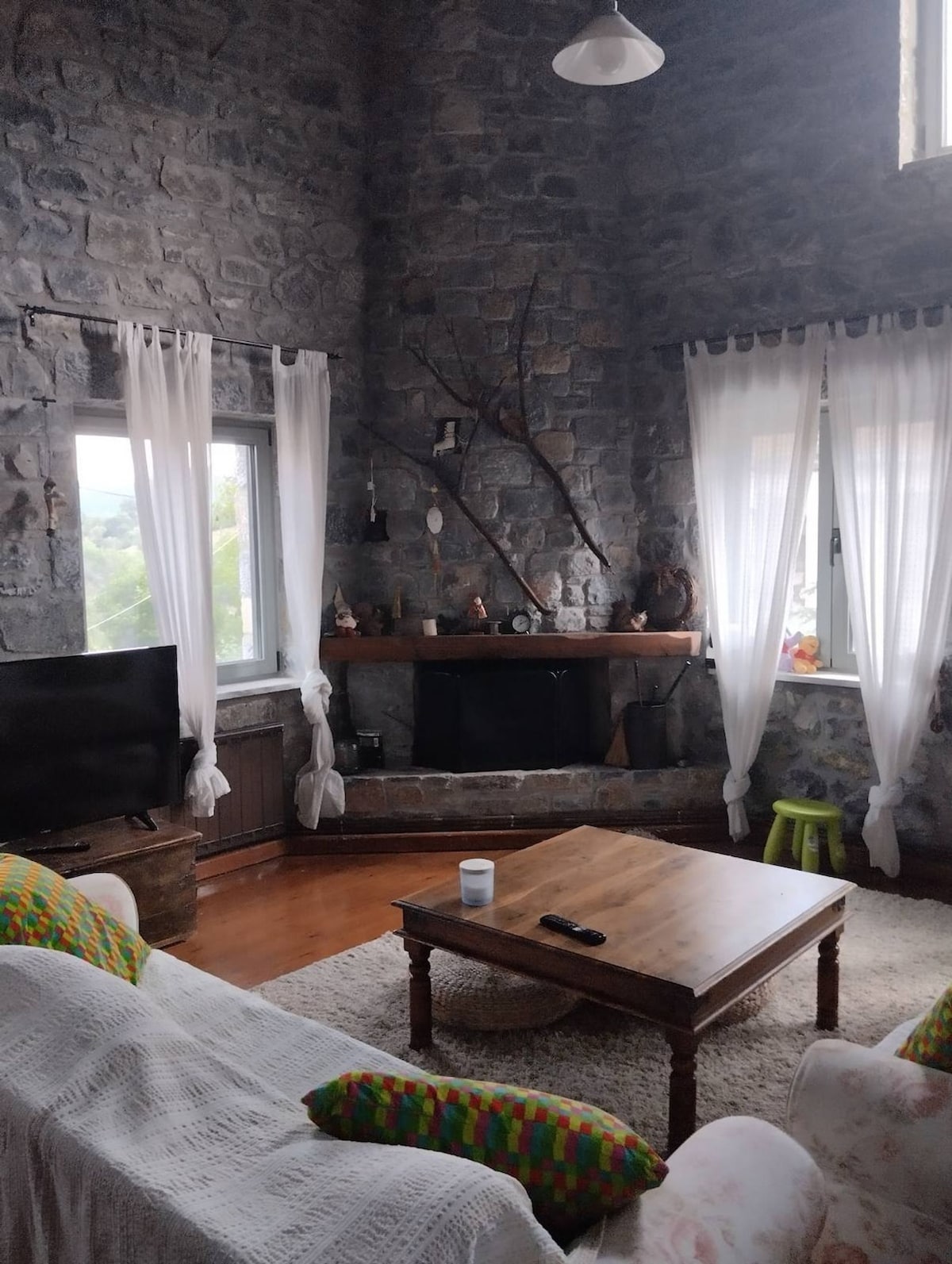 Bienvenue à Arcadia, où vous découvrirez nos villages historiques et explorerez des sentiers le long des rivières, des lacs et des forêts de sapins. Notre village est à proximité de destinations populaires telles que la station de ski de Mainalon-37km Station de ski de Kalavrita à 44 km Vytina-22 km Dimitsana : 42 km Lac Doxa-40 km Rafting Ladonas-20 km À la maison, vous profiterez d'un sommeil paisible dans la chambre principale, vous profiterez du ciel étoilé depuis le puits de lumière du grenier et vous vous détendrez dans la chaleur du poêle à bois.
