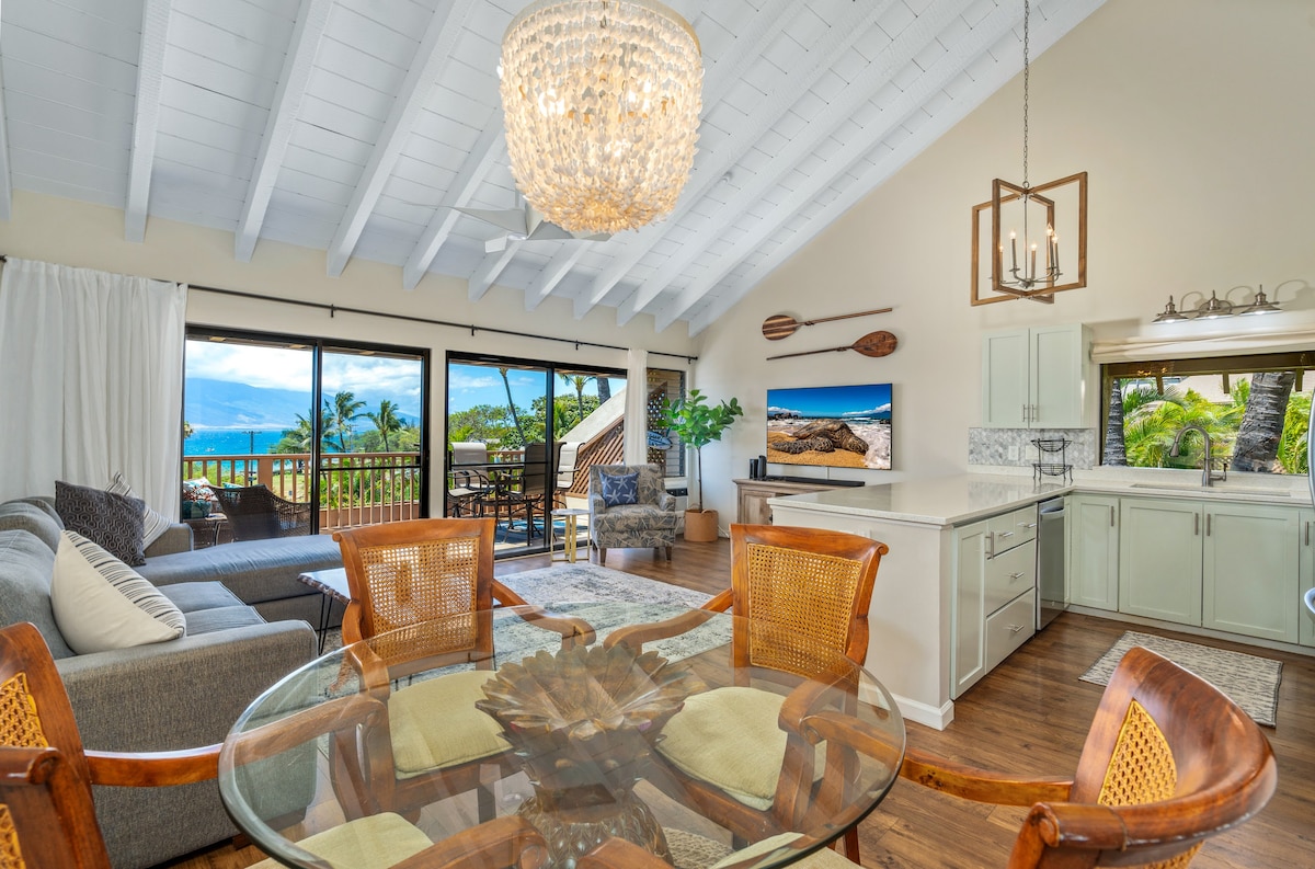 Profitez de la vue panoramique sur l'océan directement depuis le séjour. Ce magnifique appartement au rez-de-chaussée offre intimité et tranquillité avec une vue imprenable sur l'océan, où vous pourrez profiter de l'observation des baleines en saison, du paddle, du surf, de la plongée avec tuba ainsi que de nombreuses autres activités juste devant votre porte. Le logement est également adjacent à l'une des plus longues plages de Maui, Sugar Beach. Et juste en bas de la route, vous trouverez d'excellents magasins, restaurants, la vie nocturne et le Maui Ocean Center.