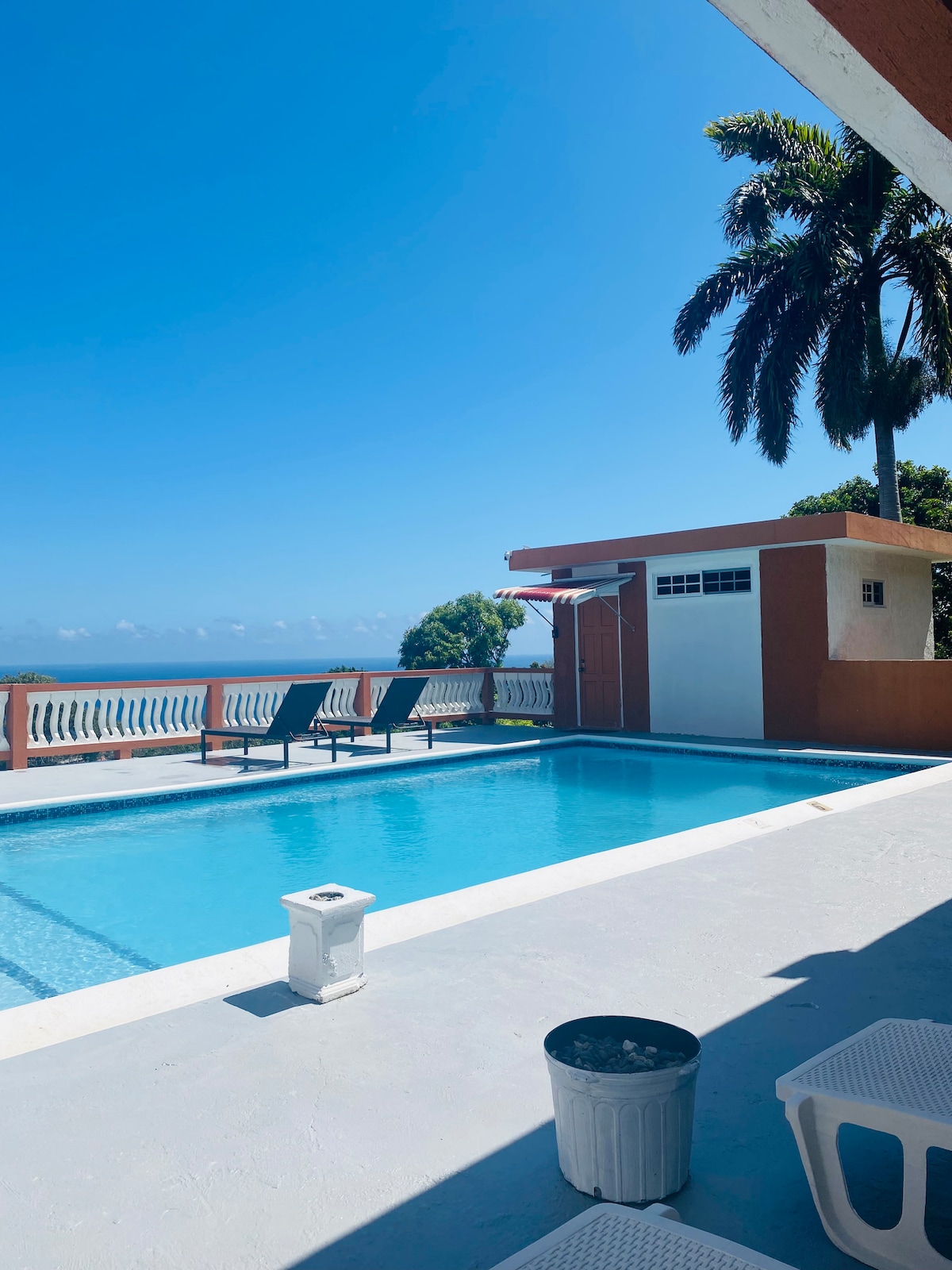 Détendez-vous dans cette maison calme, luxueuse et élégante, meublée de façon très confortable et moderne, avec vue sur les montagnes et l'océan, un environnement propre et convivial, une communauté très calme avec une atmosphère fraîche et venteuse, jamais un moment ennuyeux dans cette maison. Dans les collines de Rosehall, dans la communauté d'Edmund Ridge Estate, surplombant la plage de Rosehall, cette propriété est à 5 minutes de la plage gratuite, à 10 minutes de l'aéroport international de Sangster, à 5 minutes du centre commercial, à 15 minutes de la Hip Strip.