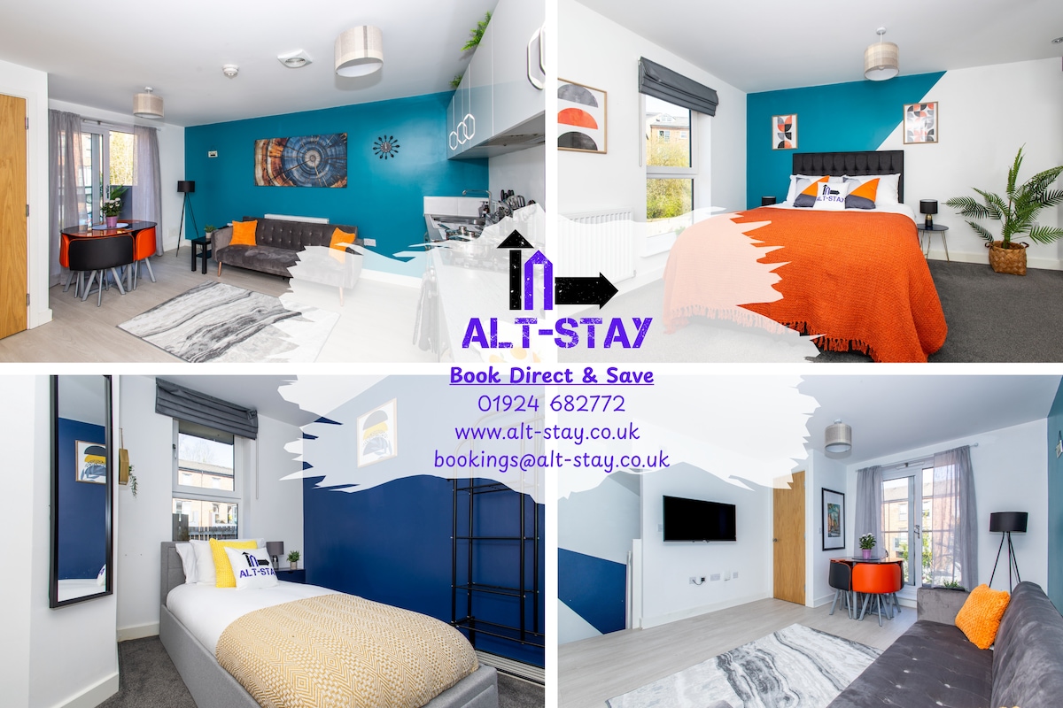 Cet appartement de 2 chambres est une belle maison moderne loin de chez vous avec toutes les commodités utiles. L'appartement Chantry Waters est situé au centre, à proximité du centre de Wakefield, de la galerie Hepworth, de Tileyard North, de la rivière Calder et des pistes cyclables et de randonnée du canal. Le Yorkshire Sculpture Park est à 15 min en voiture. L'appartement est équipé d'un parking sécurisé. Nous sommes à 7 minutes à pied de la gare de Wakefield Kirkgate. L'appartement est nettoyé en profondeur avant chaque utilisation.