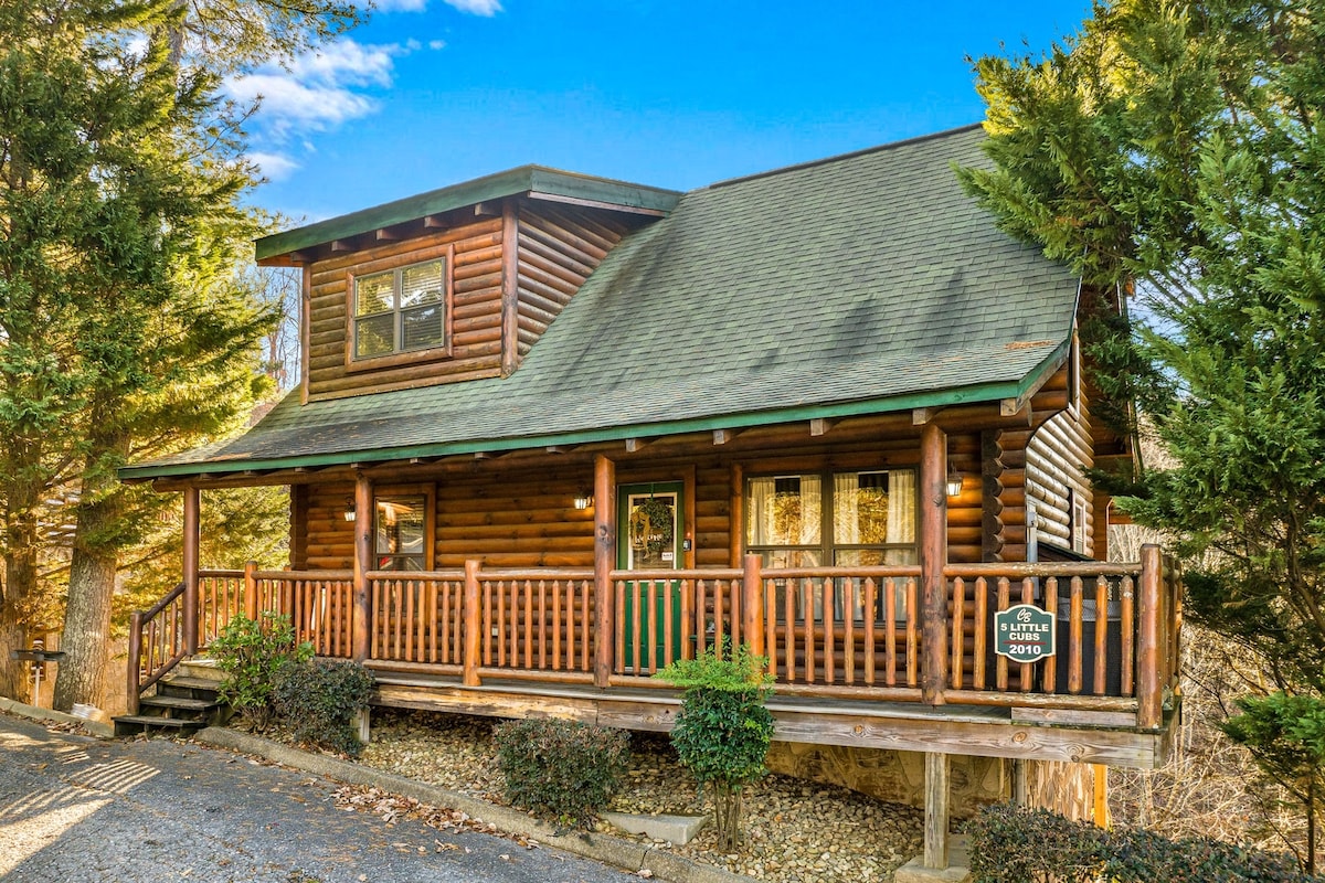 Dans les limites de la ville de Pigeon Forge, mais loin dans le Covered Bridge Resort, vous trouverez une cabane adaptée aux couples, ou une famille avec jusqu'à 5 PETITS OURSONS ! Deux lits King Size,avec baignoire. Un lit queen size et des lits jumeaux pour les petits supplémentaires. À l'étage, les enfants apprécient l'arcade/table de billard pour se divertir. Une cuisine complète avec table à manger pour 6. Une grande pièce avec des bois en bois, une cheminée en pierre/électrique et une télévision LED. Faites griller avec le barbecue à charbon. Ensuite,détendez-vous dans le jacuzzi du cœur ou dans le spa sur le porche couvert.