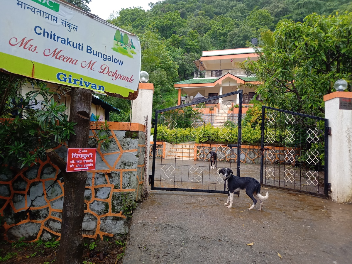 Bienvenue à Saanj🌅, une ferme paisible nichée dans les collines luxuriantes de Girivan, près de Pune. Entouré de verdure🌿, de brises fraîches et de sons apaisants de la nature🎶, Saanj est l'endroit idéal pour échapper à l'agitation de la ville. Que vous soyez ici pour des vacances en famille, une escapade entre amis ou une retraite tranquille au travail dans la nature, notre ferme offre le confort de commodités modernes mélangées à un charme rustique. ✨