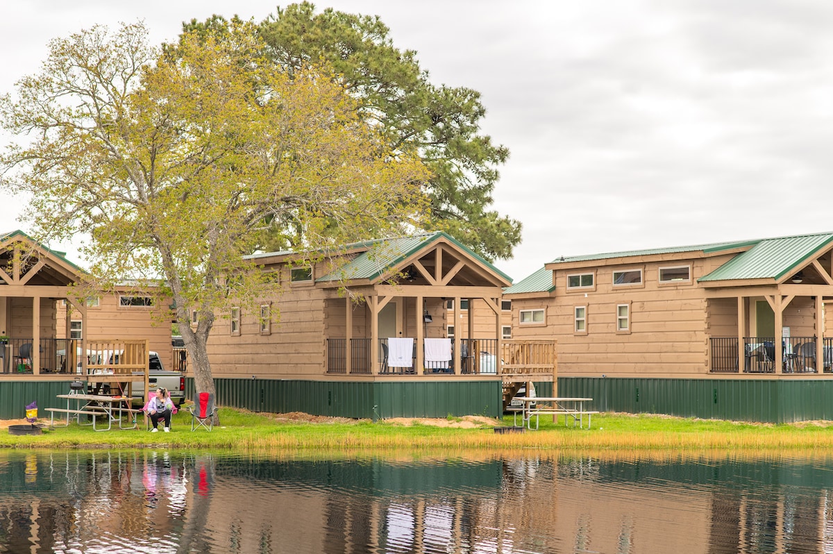 Les cabanes Longhorn et Stetson, approvisionnées en produits essentiels pour une escapade parfaite au Texas, sont situées sur un ranch familial de 100 acres. Dans la propriété fermée, les équipements sont nombreux pour un séjour court ou prolongé - y compris des sentiers pédestres, 2 étangs pour la pêche, une grange à chevaux avec table de billard, basket-ball et pickle ball et un parcours de golf de frisbee de neuf trous. Le Wi-Fi (pas toujours parfait, car c'est la campagne) est disponible et le chalet Longhorn dispose d'une télévision et d'un lecteur DVD.