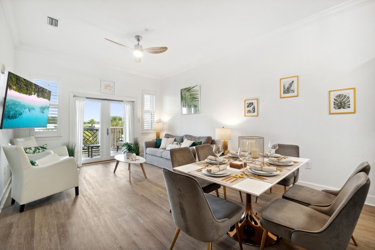 À 5 minutes à pied de la plage! **VEUILLEZ LIRE L'ANNONCE COMPLÈTE AVANT DE RÉSERVER. Le paradis vous attend dans ce magnifique condo de 2 chambres et 2 salles de bain au dernier étage, situé dans le complexe de luxe très convoité et récemment construit The Pointe, situé juste à côté de Rosemary Beach. Ce complexe hôtelier impressionnant et idéalement situé dispose d'une belle piscine tropicale, d'un jacuzzi avec foyer extérieur, d'un café sur place Big Bad Breakfast, d'un salon au bord de la piscine, d'un salon sur le toit avec une vue spectaculaire et d'une salle de sport bien équipée donnant sur la piscine.