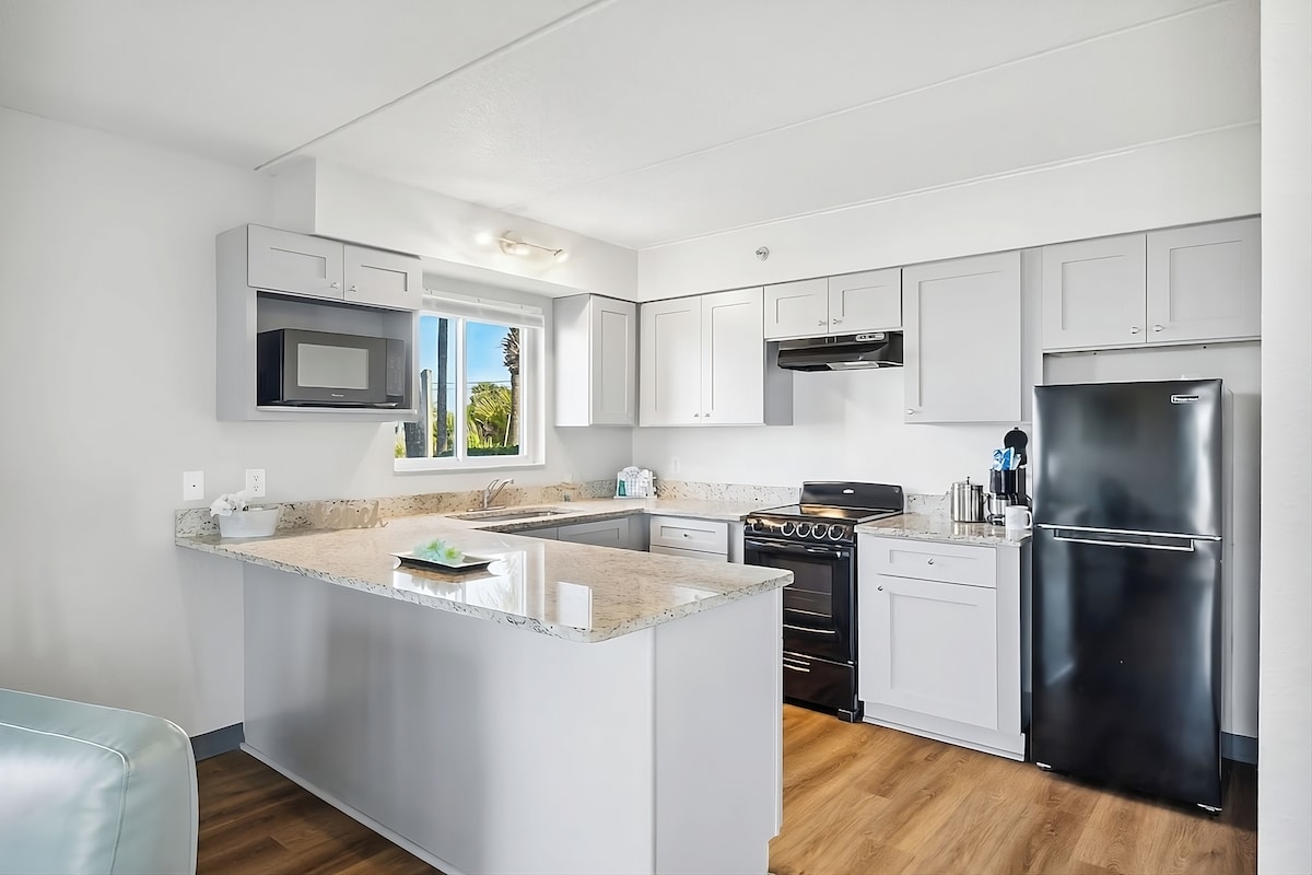 EN BORD DE MER et magnifiquement décoré 3 grandes chambres et 3 salles de bain - presque 2000 pieds carrés. Parfait pour les grandes ou les multi-familles voyageant ensemble pour de MERVEILLEUX souvenirs de vacances. Super endroit avec beaucoup d'espace pour s'amuser. L'appartement unique dispose d'une grande cuisine principale et d'une unité d'efficacité. Idéal pour les familles qui ont besoin d'un espace séparé ou d'adolescents. Ce complexe hôtelier dispose d'une salle de sport sur place, d'un bar tiki en saison et d'utilisation du feu. L'unité dispose de son propre barbecue sur le balcon.