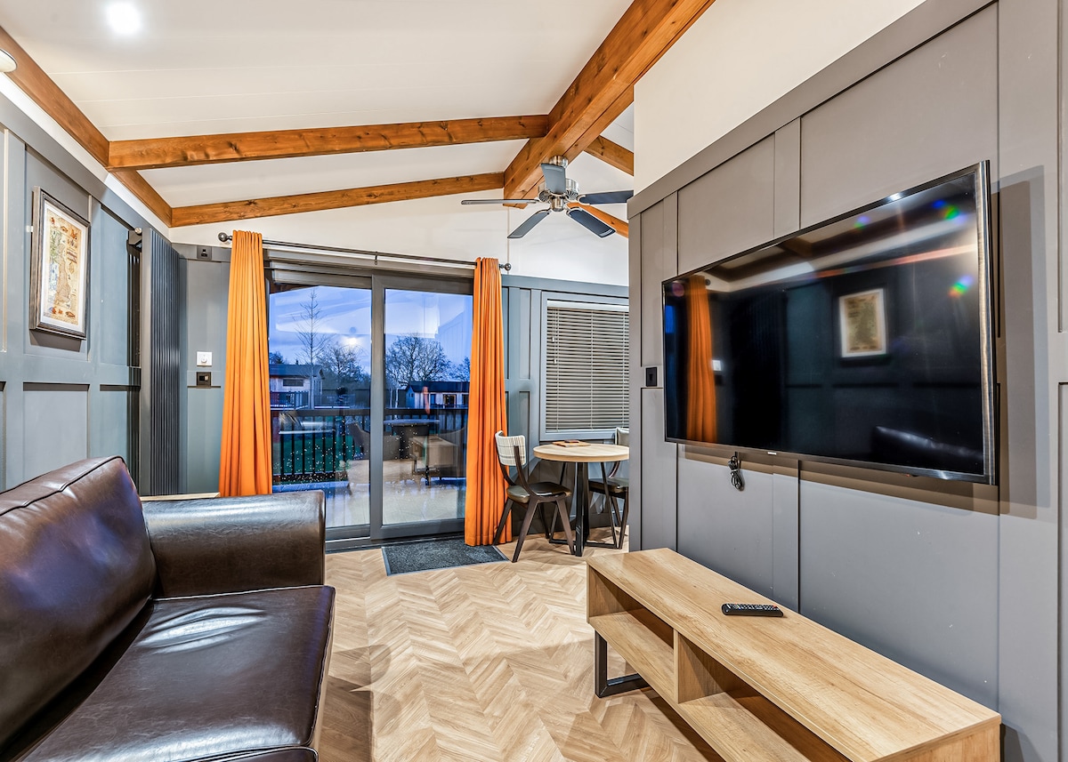 The Ettington Lodge Premier is a luxury lodge with everything you need for a romantic break away, the open-plan living area has a fully equipped kitchen with cosy seating area.
