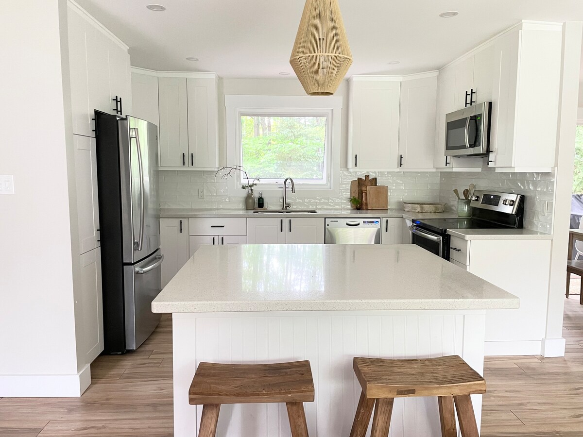 Venez séjourner dans notre chalet en bord de mer *toutes saisons* magnifiquement rénové et profitez d'une vue panoramique à couper le souffle sur la baie Georgienne ! Vous découvrirez le chalet situé au sommet d'une dune de sable, sur l'une des plages d'eau douce les plus époustouflantes au monde. Cet emplacement rare abrite une terrasse couverte privée au-dessus du sable blanc, dans une maison de plage plus proche de la baie que partout ailleurs ! Les clients d'été profitent également d'une piscine d'eau salée chauffée et d'une grande terrasse de villégiature créée par Paul Lafrance.