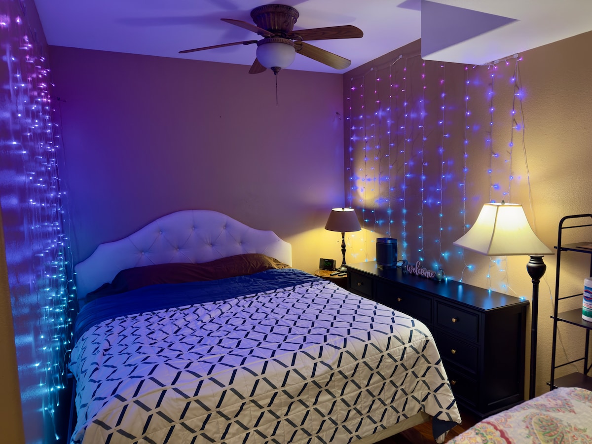 C'est un sous-sol/suite moderne et élégant situé en ville! Le logement a une entrée privée avec une serrure à digicode. Comprend une chambre avec un très grand lit et une télévision et une chambre avec un grand lit. Un ensemble de literie queen supplémentaire est disponible sur demande, mais le matelas pneumatique n'est pas fourni. Un salon avec une télévision, une cuisine, une laveuse et une sécheuse, et deux places de stationnement. Le logement est équipé d'une connexion Internet haute vitesse et de café. Situé à quelques minutes du centre-ville de Reno! Et à moins d'un mile du Reno-Sparks Livestock Event Center.