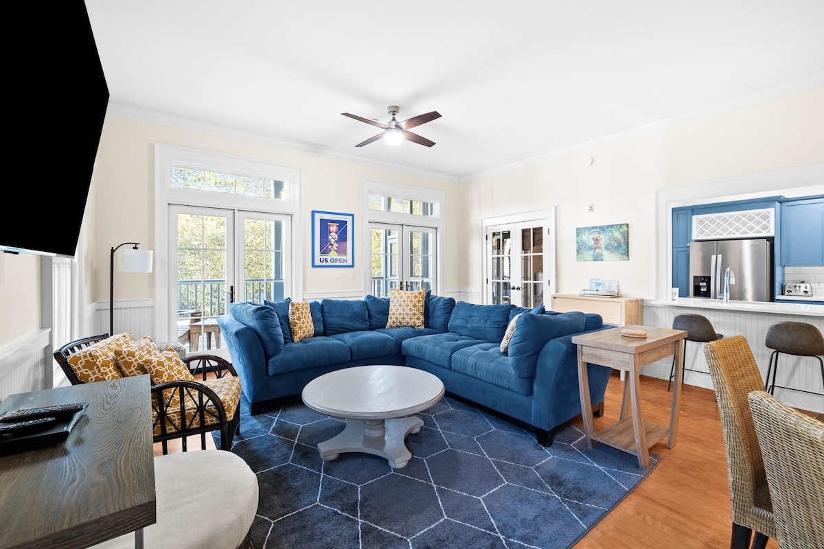 Marches vers la plage de sable blanc, The Big Chill et pistes cyclables! Détendez-vous à Lochshire, notre refuge lumineux de 2 lits et 2 salles de bain sur la pittoresque 30A. • 4 sièges électriques inclus • Piscine communautaire pour les baignades ensoleillées • Équipement de plage et vélos inclus • Téléviseurs intelligents, Wi-Fi rapide et cuisine complète Faites un barbecue au bord de la piscine après une journée dans le Golfe, puis admirez le coucher de soleil. Votre escapade parfaite de 30A commence ici.
