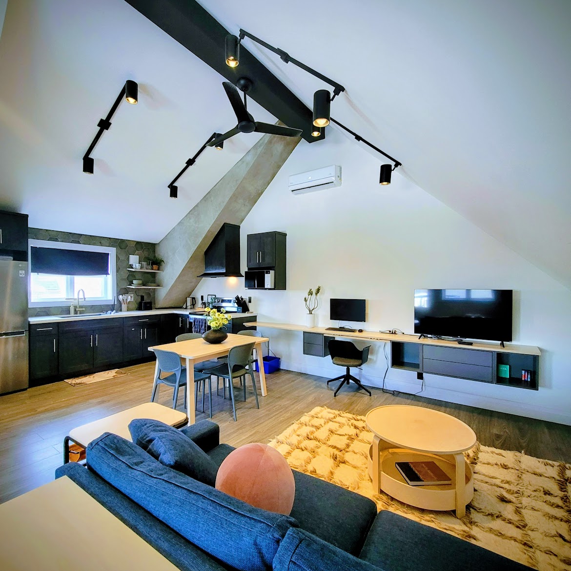 Que vous soyez en ville pour le sport, le travail ou la famille, vous adorerez la façon dont l'appartement est : Entièrement meublé : de la cuisine à la chambre, nous mettons tout en œuvre pour vous. Confortable : foyer au gaz et matelas gonflable queen pour les voyageurs supplémentaires. Entrée privée : votre propre accès à la serrure intelligente. Espace extérieur : votre propre terrasse privée avec barbecue. Piscine chauffée : piscine PARTAGÉE disponible de mi-mai à septembre. Divertissement : restez connecté avec le WI-FI et profitez de Netflix, Prime et Disney sur le Smart Stationnement : pas de soucis pour trouver une place