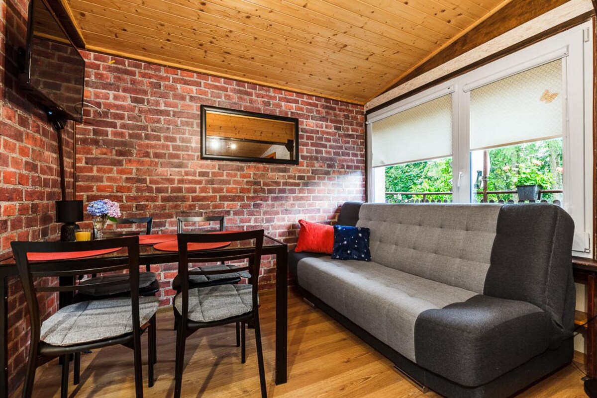 Na parterze znajduje się salon z rozkładaną sofą (dla jednej dodatkowej osoby), telewizorem oraz stołem jadalnianym, w pełni wyposażony aneks kuchenny z płytą grzewczą, lodówką, czajnikiem i ekspresem do kawy, łazienka z prysznicem i suszarką do włosów. Na piętrze przygotowano dwie sypialnie, w których znajduje się łącznie 5 pojedynczych łóżek. Do dyspozycji Gości jest również taras z meblami ogrodowymi oraz grillem, a wewnątrz znajdują się parawan plażowy, leżak, żelazko i dostęp do Wi-Fi.