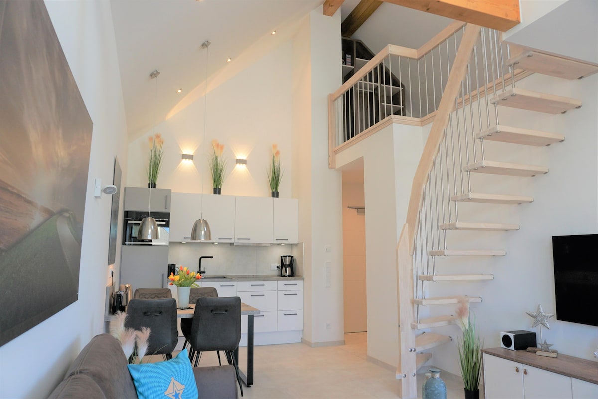PRIX incluant la contribution des invités (KurTaxe) et le nettoyage final ! PAS de frais supplémentaires ! Profitez de l'excellent emplacement de l'appartement confortable, rénové en 2024, appartement de vacances BALTRUM à l'étage supérieur de l'ancienne maison de pêcheur. Avec la digue en vue, ton repos commence par un pas à la porte. De l'appartement, vous pouvez rejoindre Horumersiel & Schillig en quelques minutes, ainsi que les stands à pied. On ne peut pas faire plus central et plus calme ! Votre chien est également le bienvenu chez nous ;) La mer se réjouit de vous accueillir :)