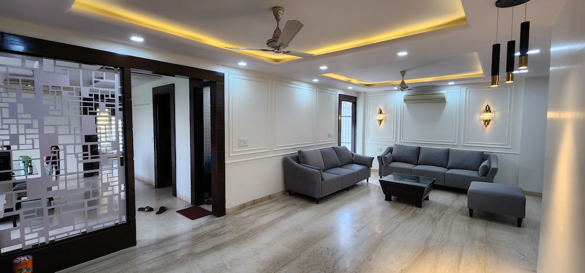 LA STAYS : Séjour privé de luxe dans l’ouest de Delhi, avec terrasse ouverte, spa, projecteur cinématographique avec écran automatique et accès préconnecté à Netflix, Prime, Hotstar, YouTube et Zee pour une expérience de vacances à la maison parfaite. ✨Cet élégant logement d’une chambre à coucher allie style, intimité et détente pour des séjours de qualité. Profitez d'un séjour serein tout en étant connecté aux marchés, au métro, aux cafés et aux meilleurs endroits de la ville. Idéal pour les escapades relaxantes, les célébrations et les séjours de luxe.