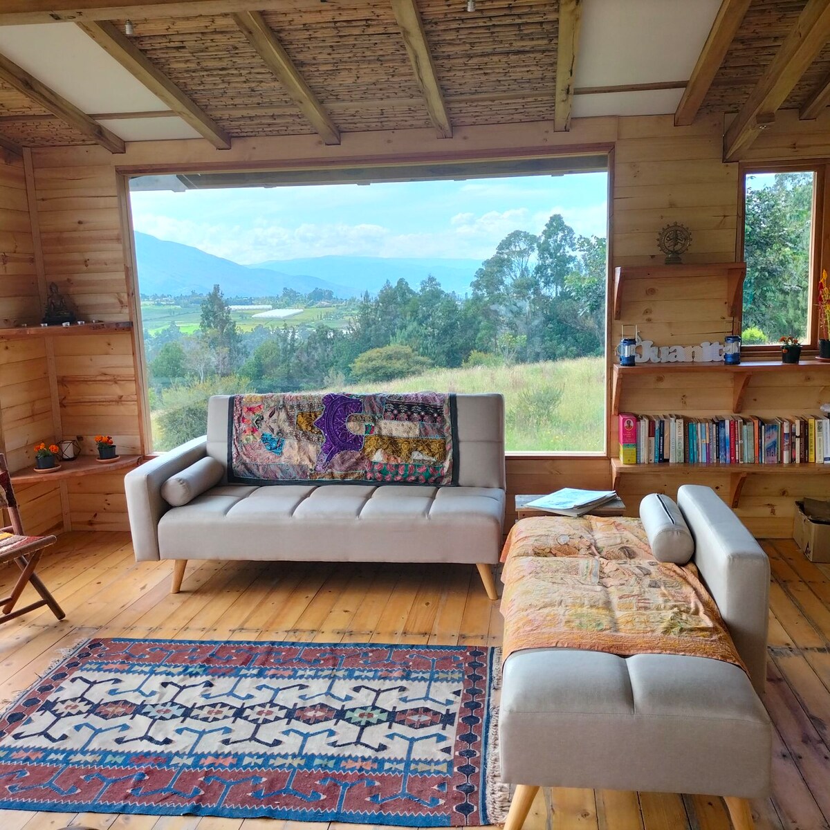 Vivez une expérience unique dans cette maison Yurta où vous pourrez profiter en compagnie de votre famille et de vos amis d'un paysage inégalé avec vue sur Iguaque, en pleine nature , au calme et au silence. Vous pourrez profiter de notre jacuzzi et ,maille catamaran sur la terrasse. Nous avons une yourte à part où vous pourrez faire du yoga, de la méditation et de la guérison à travers les sons du gong, des bols tibétains et d'autres instruments vibratoires. Ceci est facultatif et n'est pas inclus dans le prix .