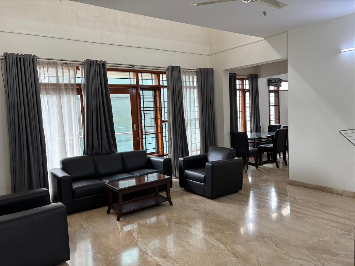 Manhattan Duplex, dans le quartier animé de Bangalore, propose un luxueux duplex 3 BHK couvrant 2100 pieds carrés. Ornée d'un mobilier italien, chaque chambre respire l'élégance et la sophistication. Les équipements comprennent la climatisation, une connexion Internet haut débit et un téléviseur avec Netflix. Détendez-vous dans la baignoire ouverte de la chambre principale ou utilisez le bureau de la deuxième chambre. Avec un parking pour deux voitures, un ascenseur, une alimentation de secours 24h/24 et 7j/7 et des avantages comme un superviseur de la propriété et des retraites surprises, votre séjour promet le confort et la commodité !