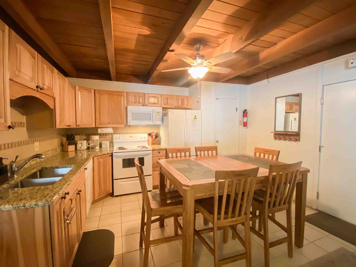 Venez vous détendre dans votre escapade en montagne récemment rénovée de 1000 pieds carrés avec 2 chambres/2 salles de bain + loft, pouvant accueillir confortablement 6 à 8 adultes. Les meilleurs équipements de la région avec 3 jacuzzis, piscine intérieure, sauna, salle de jeux, court de racquetball, et plus encore. Cette co-propriété calme au 3e étage dispose de hauts plafonds voûtés avec des poutres en bois et beaucoup de lumière naturelle. Idéalement situé à proximité de stations de ski de classe mondiale, de sentiers de randonnée/vélo, de restaurants, de brasseries et de magasins.