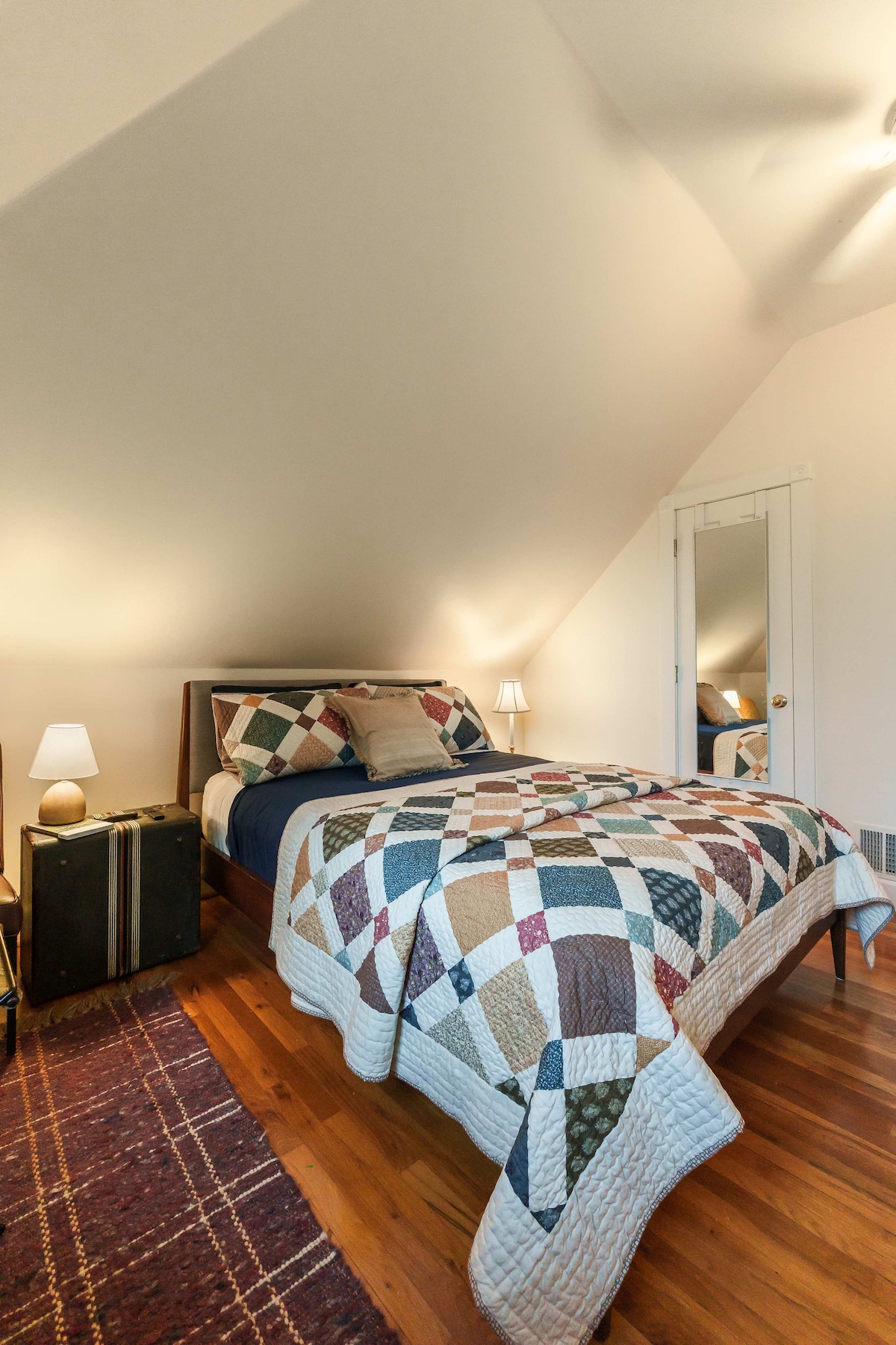 Salon confortable et bien éclairé à l'étage au-dessus de notre maison. Actuellement, nous avons 2 chambres disponibles, plus une salle de bain complète avec douche d'angle, coin salon, table à manger, micro-ondes, réfrigérateur pleine grandeur. Les fenêtres donnent sur un quartier calme, une cour arrière et des jardins. Situé près du cœur du riche quartier du centre-ville de Newberg, à proximité des parcs, des cafés, de la dégustation de bière et de vin, des restaurants de la ferme à la table, des magasins d'antiquités, du cinéma, de l'épicerie et du centre culturel. Petit déjeuner frais du jardin inclus.