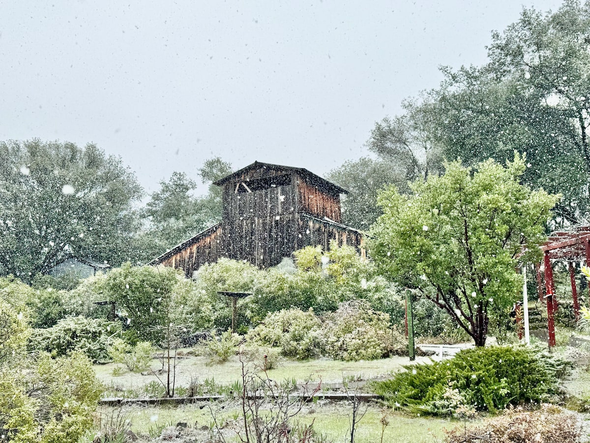 Découvrez la tranquillité à seulement deux minutes du centre-ville d'Orland, et 30 minutes du centre-ville de Chico idéalement niché au large de l'I-5. Notre Airbnb confortable offre un charme de campagne avec un accès rapide aux commodités locales. Profitez d'un café et d'une collation gratuits, de séjours adaptés aux animaux de compagnie, promenez-vous dans notre verger d'oliviers enchanteur et découvrez notre olivier centenaire. Découvrez le meilleur des deux mondes : la tranquillité du pays rencontre la commodité d'une petite ville.