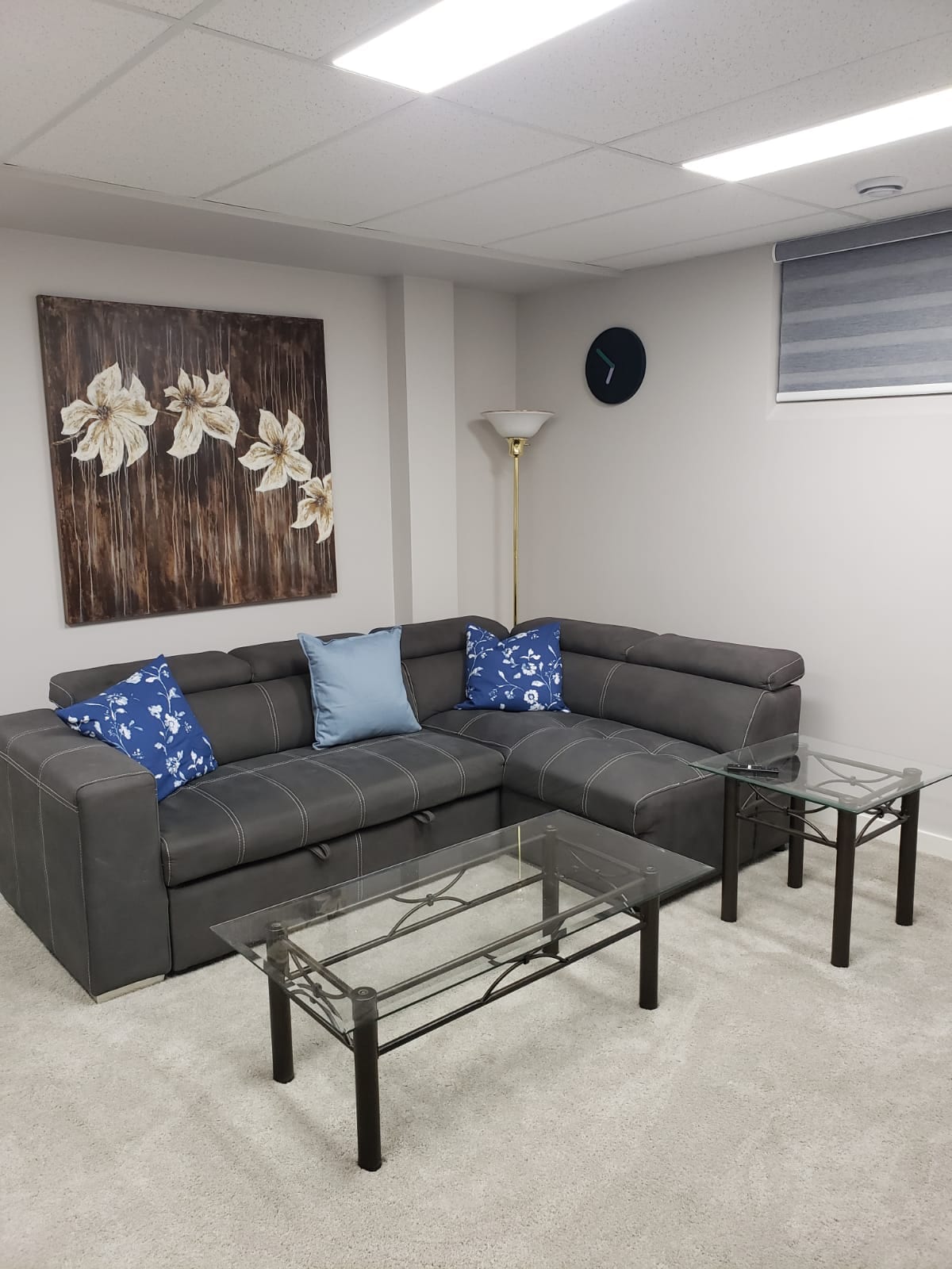 Suite confortable et spacieuse d'une chambre au sous-sol