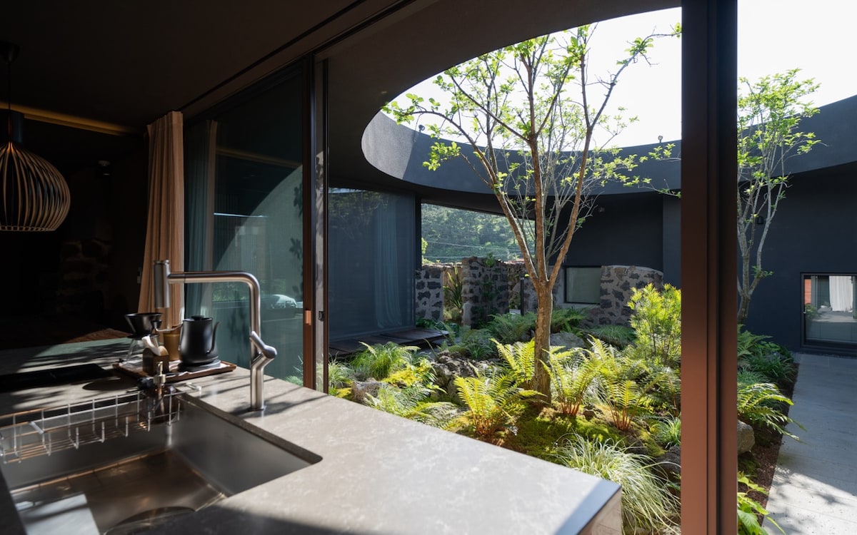 H Jeju Architecture Award. Logement privé. Piscine intérieure chauffée 3 chambres, 2 salles de bains Restaurant au coucher du soleil. Votre propre jardin