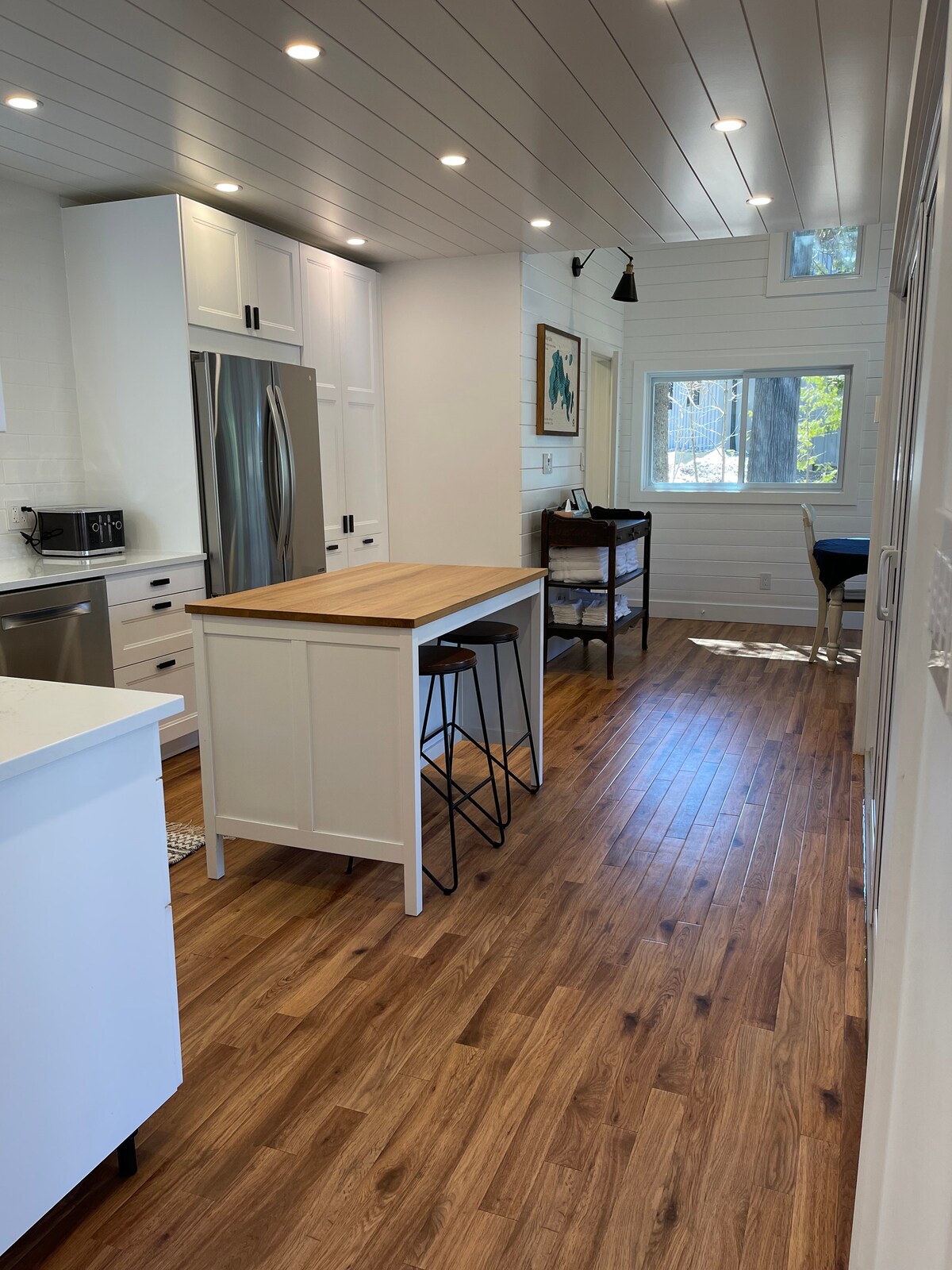 Notre Kabin est un cottage-boutique de 4 chambres récemment rénové en toute saison (environ 1 500 pieds carrés) avec de nombreux détails et caractéristiques que nous sommes ravis de partager avec vous. Situé en bordure de l'eau, le Kabin a une belle exposition sud-est, surplombant le lac Paudash. L'eau est accessible par un front de mer de sable en pente douce ou depuis notre tout nouveau quai. À un peu plus de 2 heures de Toronto, mais la pittoresque Hwy 28 fait passer le temps. Nous ADORONS notre logement et nous sommes certains que vous aussi !