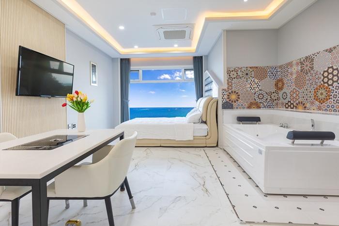 Bonjour, nous sommes Onda, qui fait des recherches et fournit divers aires de repos. Nous espérons que tous ceux qui resteront ici passeront un moment confortable et heureux. [Accommodation Introduction] Un lieu où vous pourrez profiter du confort tout en regardant la mer de l'Est. J'espère que ce sera le moment de guérir avec mes proches dans la mer et des chambres spacieuses et propres qui me permettent de m'immerger dans des fantasmes comme si j'étais entré dans un conte de fées. [Type de chambre] Salon (1 queen) + cuisine + espace duplex (1 queen) + 1 toilette * La literie est fournie en fonction du nombre de personnes.