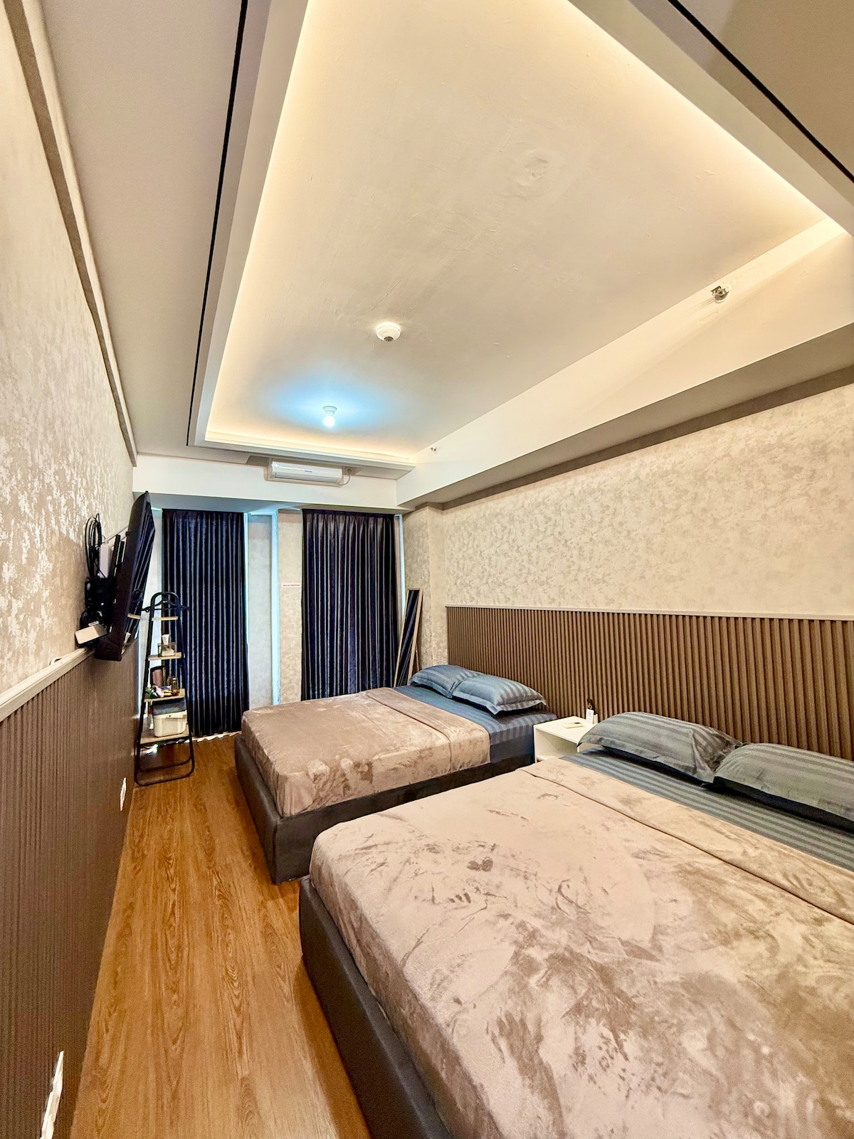 Fully furnished one bedroom suite (380sqf) with living room, kitchen, sofa and smart TV 🛜 Hot Shower 🚿 Perfect for business traveler,couple Located near CBD Best price & satisfy service💯 5 mins to Royal Plaza Mall, Hang Tuah Uni, Hospital & Train 🛍️🏥🚂 10m to UPH/Trans Icon Mall 20m to Galaxy Mall/Petra Uni🎓 25m to Tunjungan Plaza🛍️ 30m to Airport✈️ Stunning Facilities: 🏊♂️ Pool,Private Library, 🌳 Garden,🍖 Area, 🏃♀️Track,🧖♂️Jacuzzi&Sauna🧖♀️, 🏋️Gym👟,🎮Game Room📺,🍿Movie Room