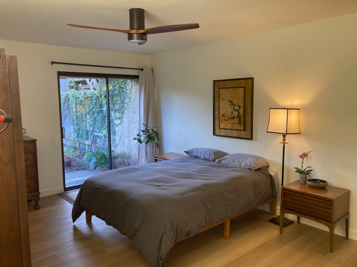 *Profitez d'un panier frais d'œufs et de friandises à la ferme !* Micromaison nouvellement construite sur un terrain d'un acre niché entre 2 jardins dans la région du vieux jardin de Fig. Le chalet est séparé et à 50 pieds de la maison principale avec sa propre clôture d'intimité de 7 pieds et ses rideaux. Les fenêtres donnent sur le jardin de travail, la pergola et un demi-acre où les chèvres et les poules se nourrissent. On se croirait à la campagne, mais au centre de Fresno. À distance de marche du marché fermier, de Whole Foods et de Christmas Tree Lane. Demandez-nous plus d'infos sur notre tarif pour les infirmiers en voyage.