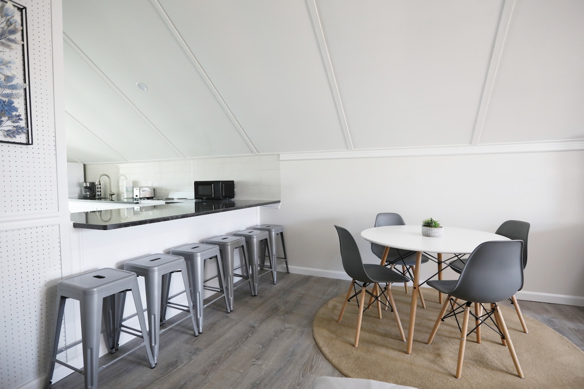 Loft spacieux | Salon à aire ouverte | Cuisine complète + bar Appartement 8 Loft à aire ouverte lumineux et spacieux avec quatre grands lits placés aux extrémités opposées pour plus d'intimité dans un espace entièrement ouvert. Profitez d'une salle de bain complète, d'une grande cuisine avec des électroménagers pleine grandeur, d'un bar de cuisine et d'une table à manger. C'est l'endroit idéal pour se détendre, manger ou travailler. Moderne, flexible et confortable, ce loft est idéal pour votre prochain séjour à la plage. * Caméras de surveillance à l'extérieur de la propriété *