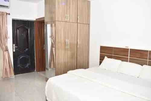 Ce logement est un appartement d'une chambre situé au centre et fini avec goût pour garantir un séjour confortable. L'appartement est équipé d'une alimentation de secours pour assurer une alimentation électrique 24h/24, un nettoyage quotidien, une connexion Wi-Fi, une cuisine entièrement équipée et un espace de travail dédié. L'appartement est situé au centre et permet d'accéder aux principaux restaurants, marchés, centres commerciaux et dans la zone centrale d'Abuja avec un trajet très court.